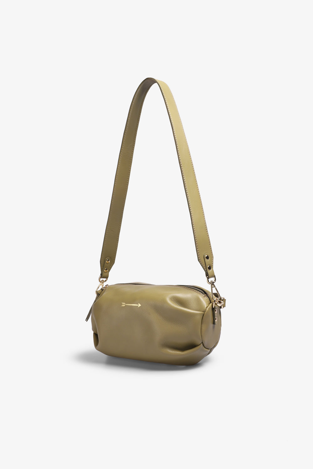 Bolsa Mercules confecionada em 100% pele e forma de balão. Com uma alça ampla comprida (90 cm) para a transportar confortavelmente ao ombro ou como mala a tiracolo e uma alça curta (30 cm) para a transportar na mão. Com um forro de algodão e uma data Mercules sourada como padrão à frente.