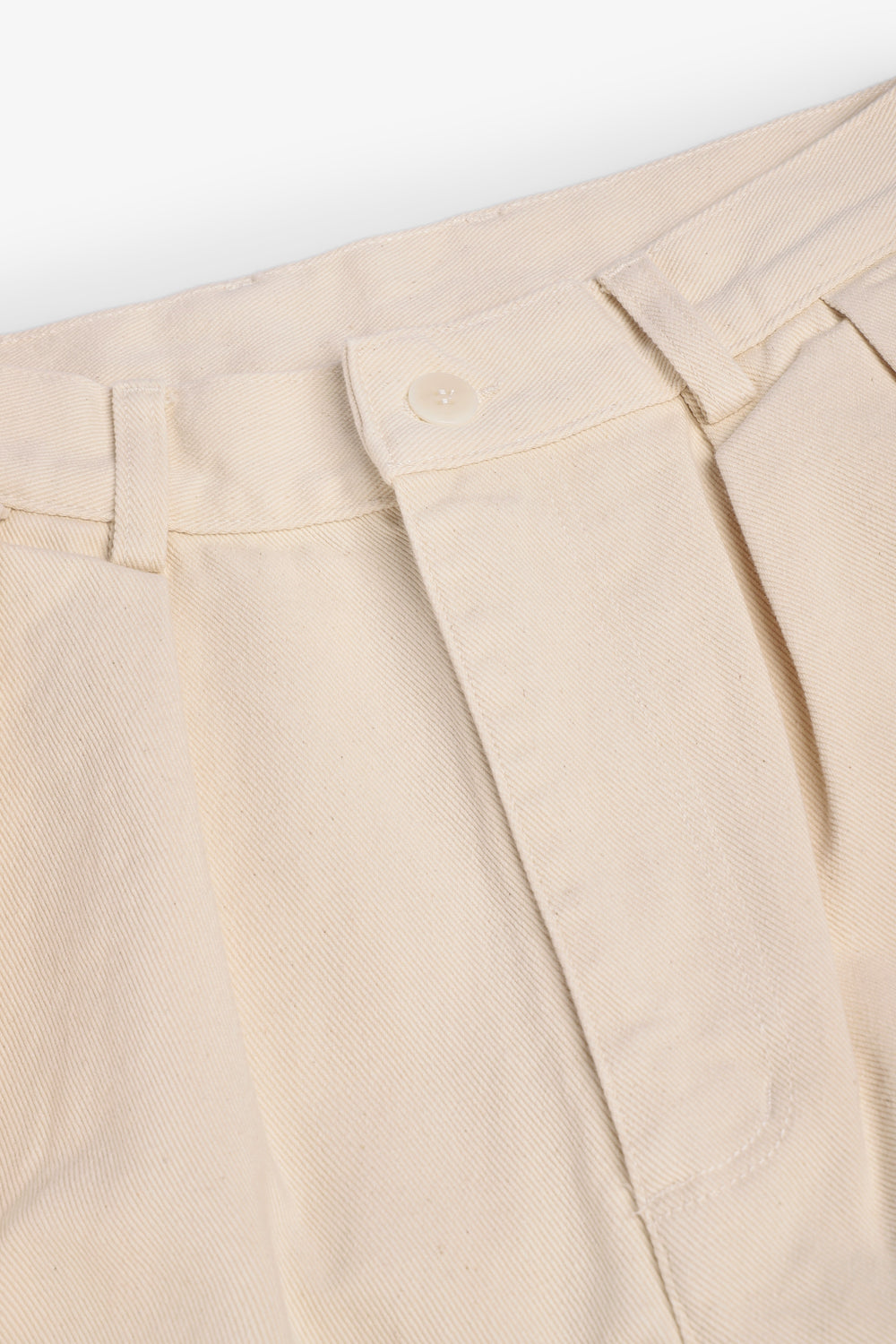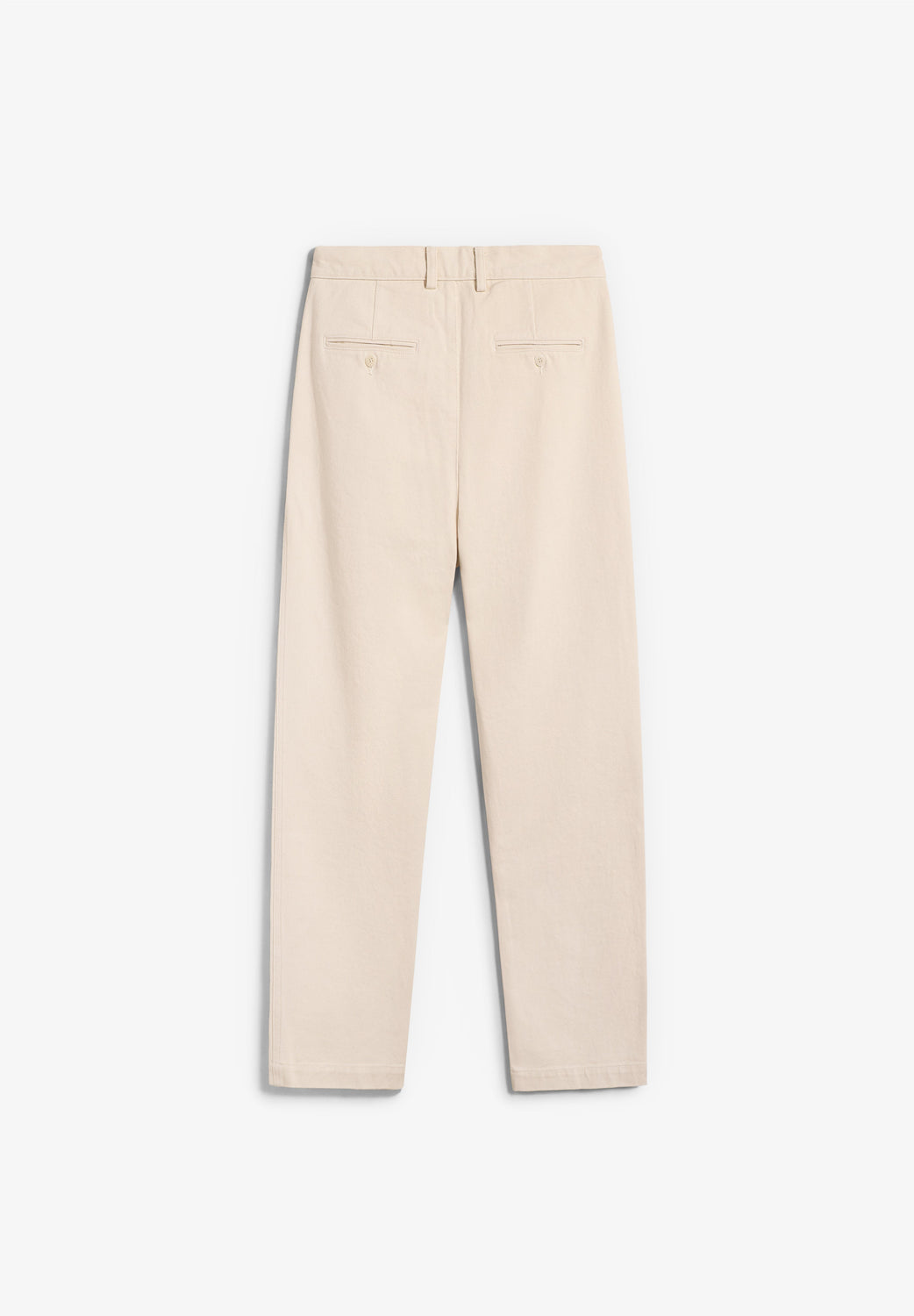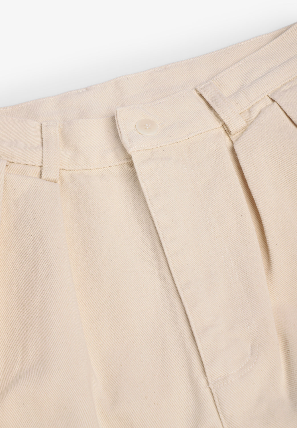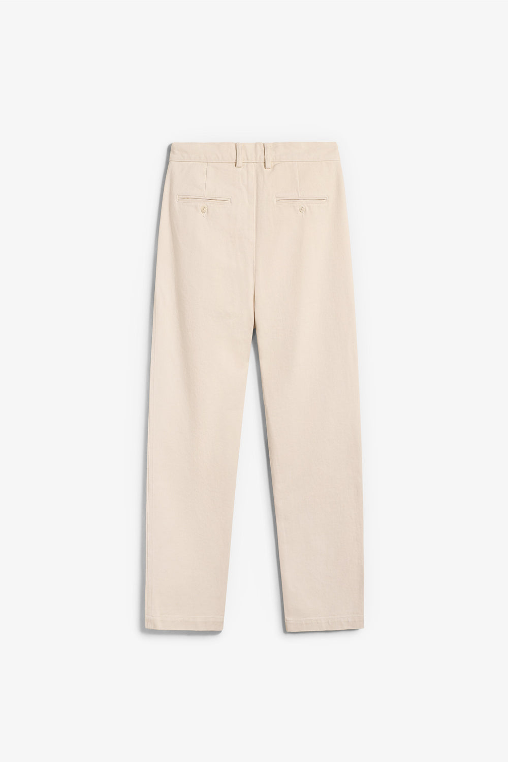 Calças La Paz confecionadas em 100% algodão orgânico e ajuste folgado. Com uma frente plissada e discretos bolsos abotoados na parte de trás, tecido grosso e botões de corozo.
