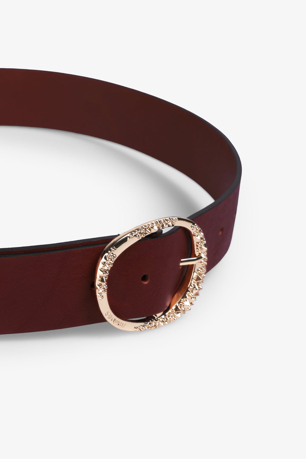 Cinto Jimenas confecionado em pele de bovino de alta qualidade em acabamento de croute e fabricado artesanalmente em Valência. Fivela dourada exclusiva da Jimenas.