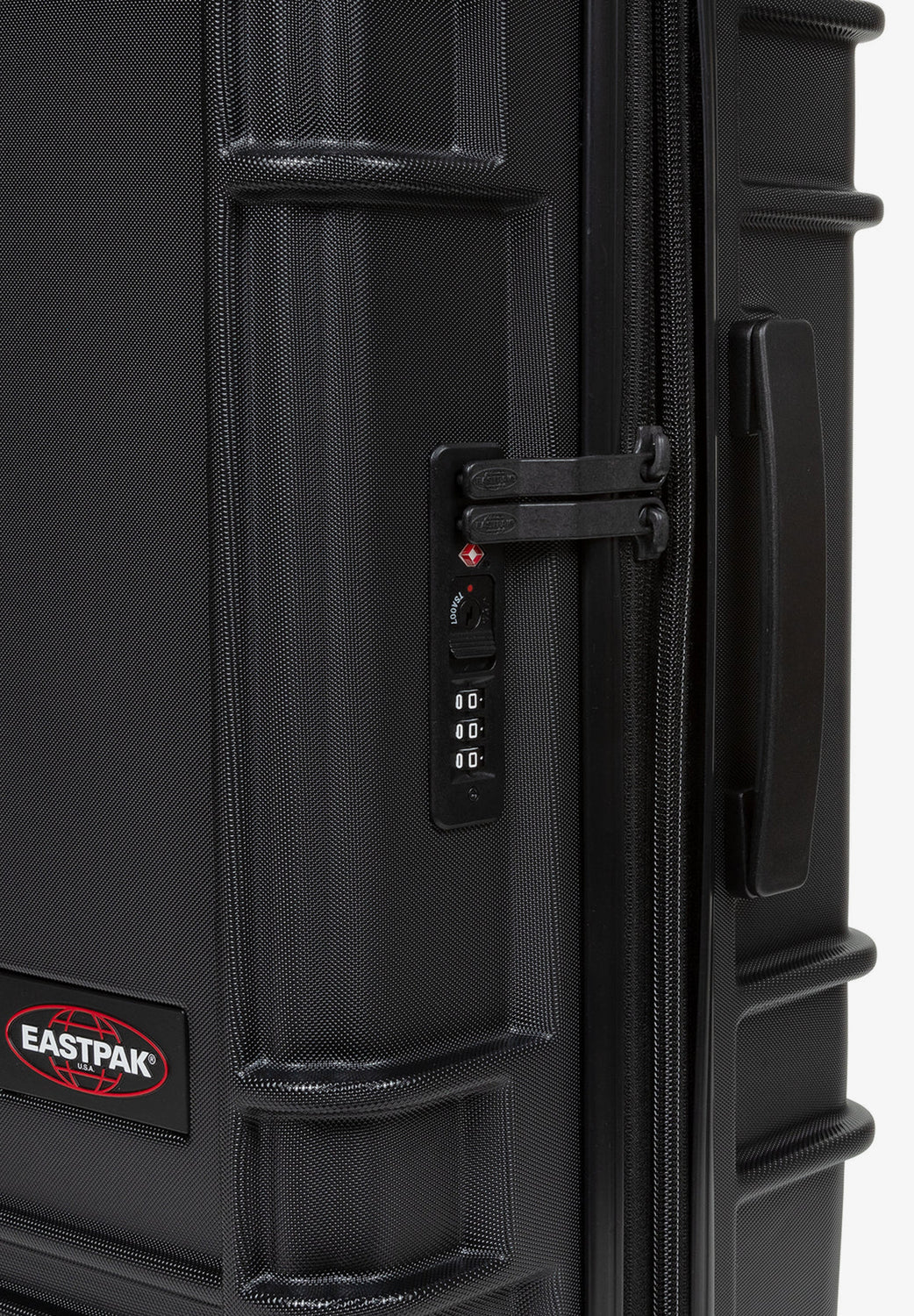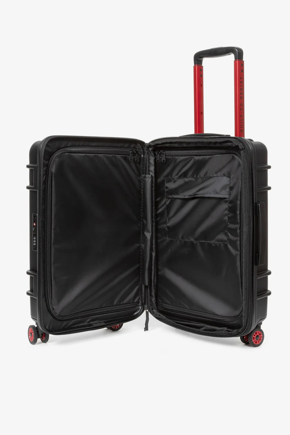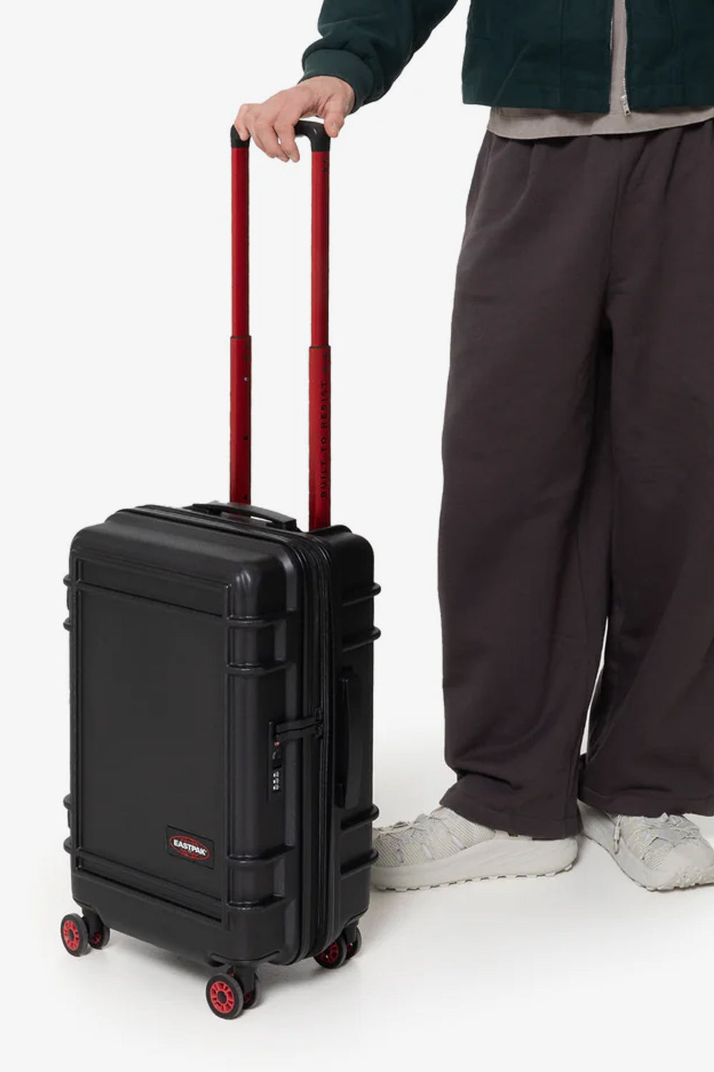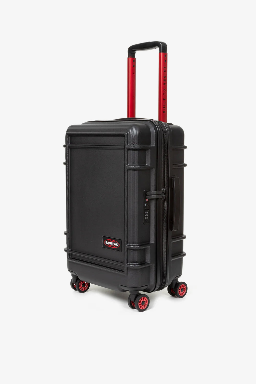 Maleta rígida Eastpak confecionada em 100% policarbonato. Com um tamanho de cabina e dois compartimentos com fecho de correr. O design é ultra-leve e é complementado com vários pormenores vermelhos, uma alça "Built to Resist" e rodas japonesas com sistema rotativo a 360 graus.