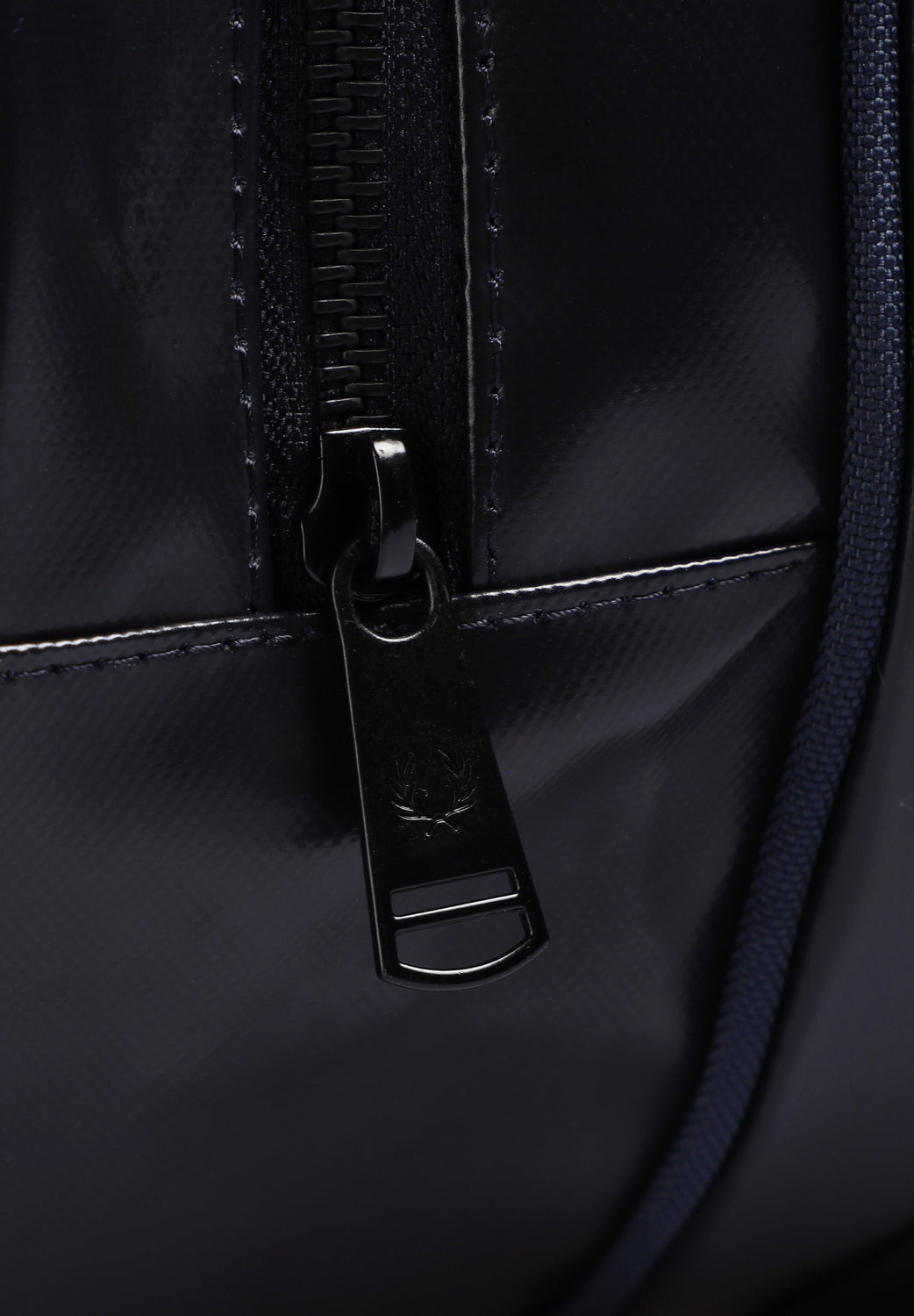 Bolsa Fred Perry confecionada em poliéster recycled com revestimento de TPU. Com pormenores metálicos em preto mate, fecho de correr duplo e compartimento com fecho de correr na extremidade. Rebordo de lona num tom mais intenso no corpo principal e logótipo da marca na lateral.