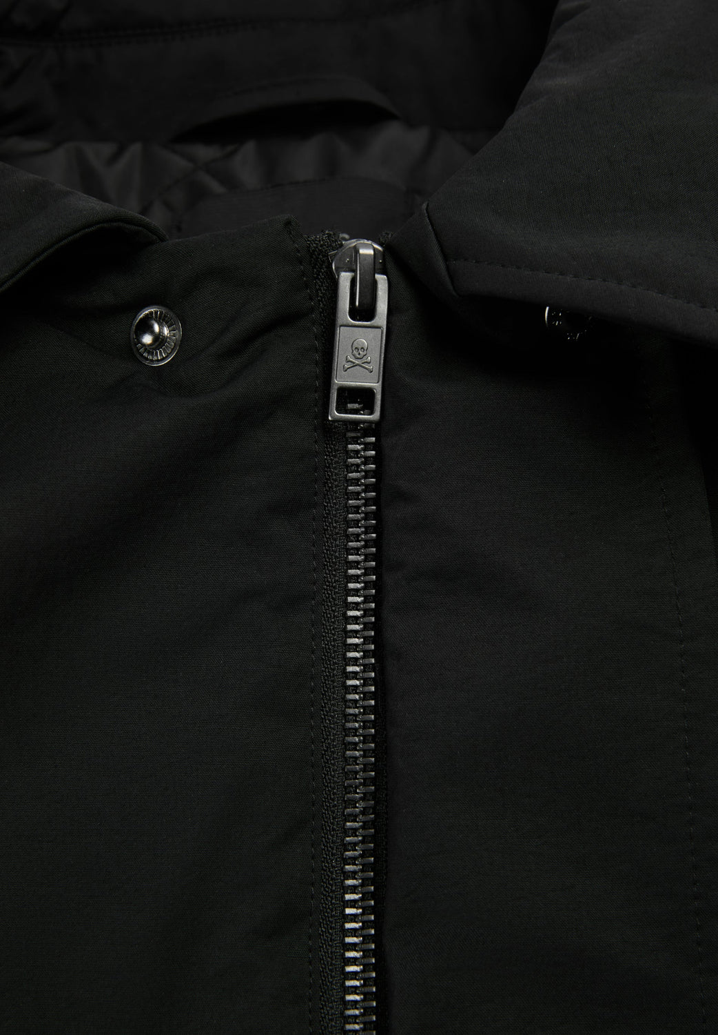 Gabardina confecionada em tecido de mistura de algodão. Gola lapela e manga comprida acabada. Logótipo de padrão no peito e nas costas. Forro combinado no tom. Bolsos de linhas vivas na cintura e pormenor de bolso interior. Fecho frontal de abotoadura osulta por aba.