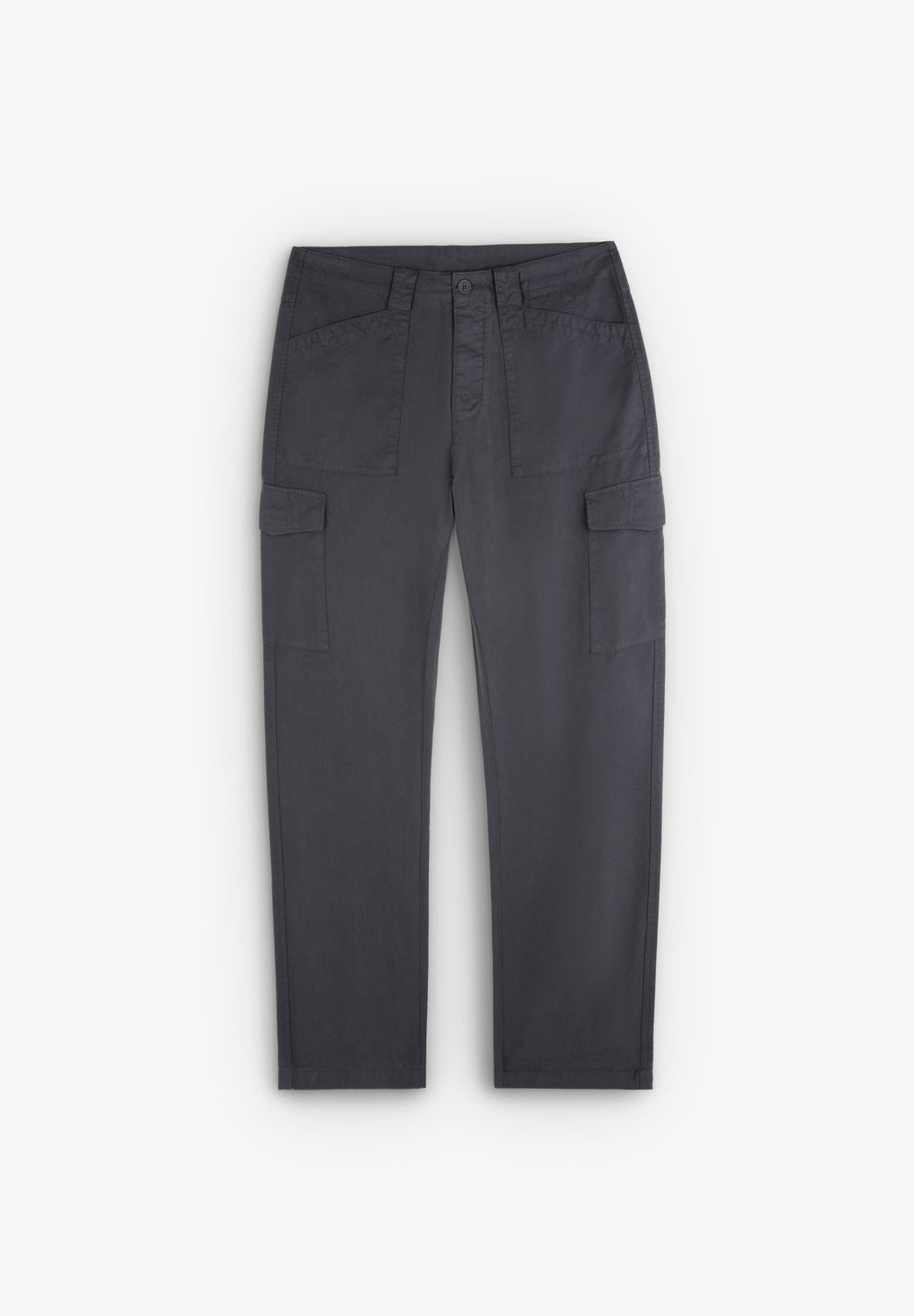 Calças tipo cargo confecionadas em 100% algodão. Regular fit, fecho com botão e zip e bolsos laterais. Bolsos de remendo na perna e presilhas na cintura.