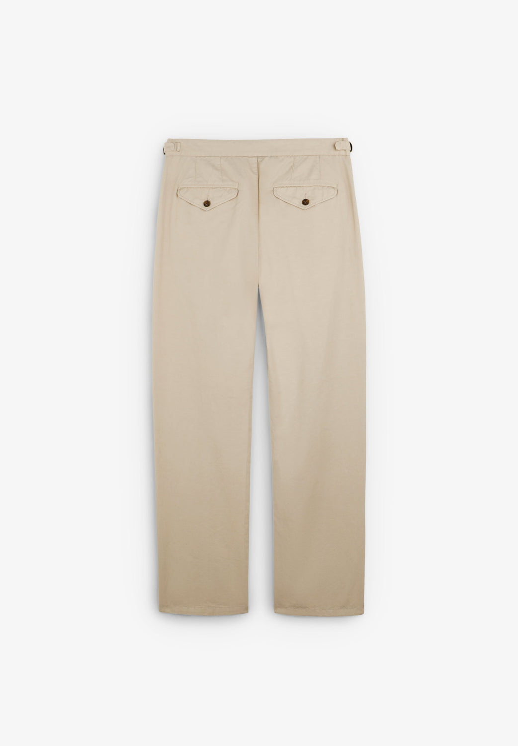 Calças chinos. Corte slim fit. Confecionadas em mistura de algodão e linho. Fecho com zip oculto por placket e botão prolongado na cintura. Bolsos laterais com boca inclinada. Bolsos traseiros com linhas vivas duplas e botão. Presilhas na cintura