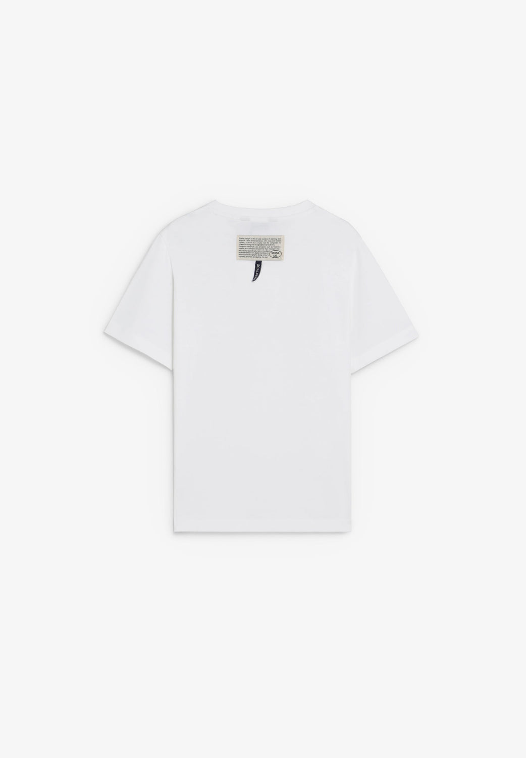 T-shirt confecionada em 100% algodão. Decote redondo e manga curta. Pormenores de padrão à frente. Etiqueta decorativa na parte superior traseira.