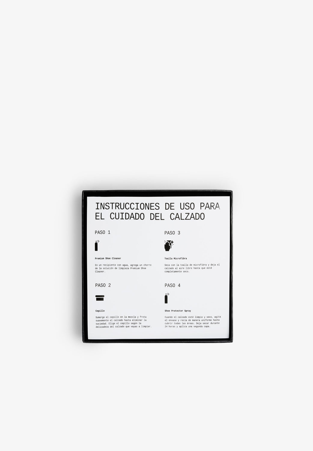 Escovas de limpeza: 2 escovas com maior e menor flexibilidade para adaptar a limpeza aos materiais do seu calçado.