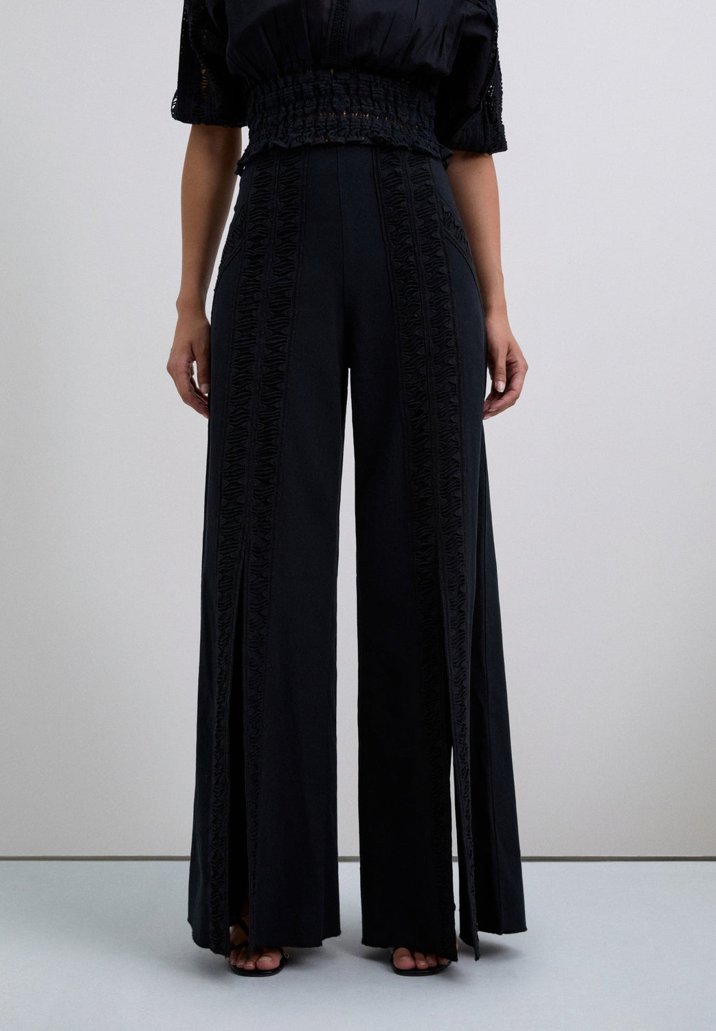Pantalón confeccionado en 100% algodón con detalles de aberturas y bordados. Corte full length, regular fit.
