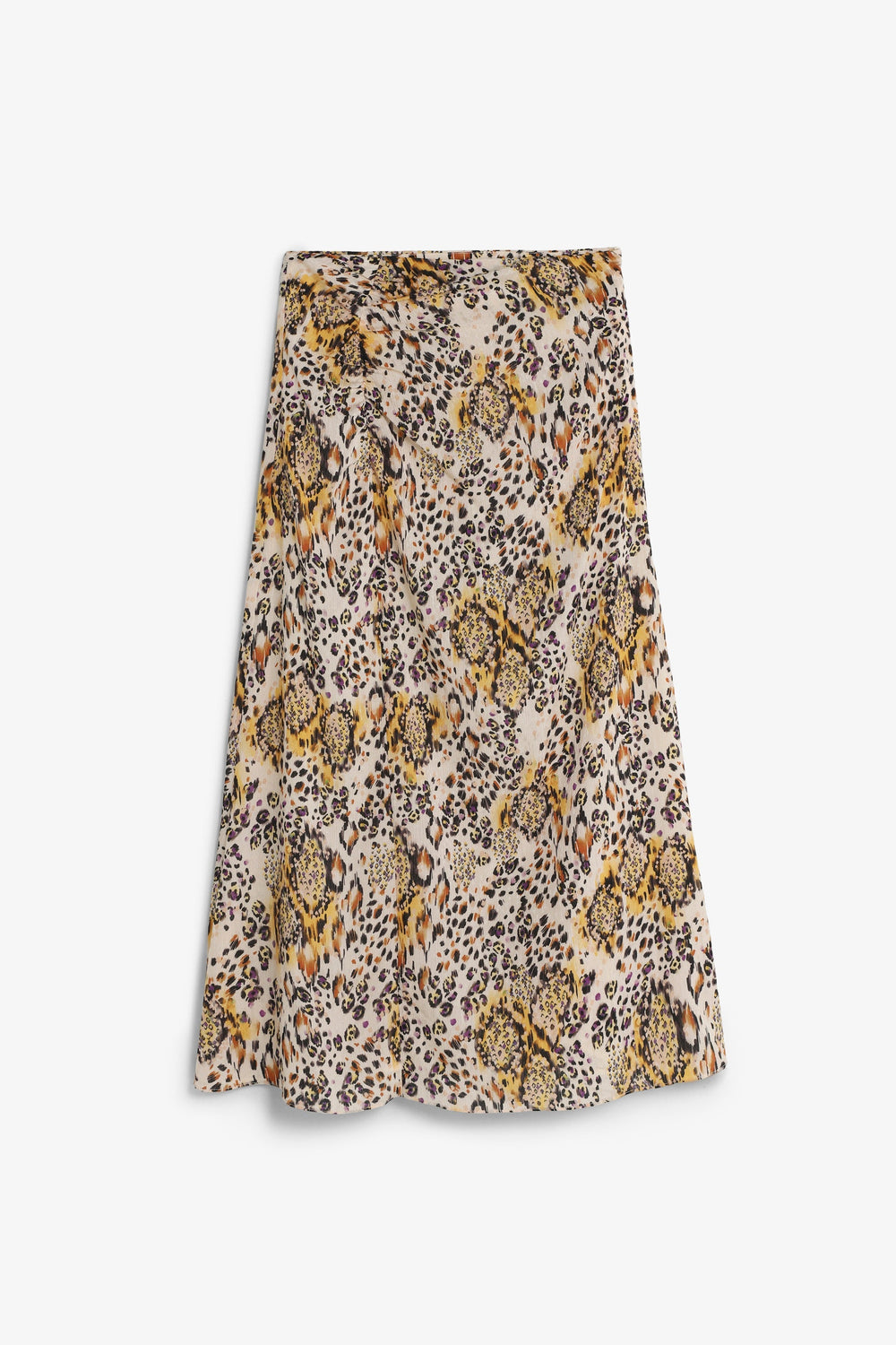 Falda midi estampada animal print. Corte regular fit. Cintura elástica.