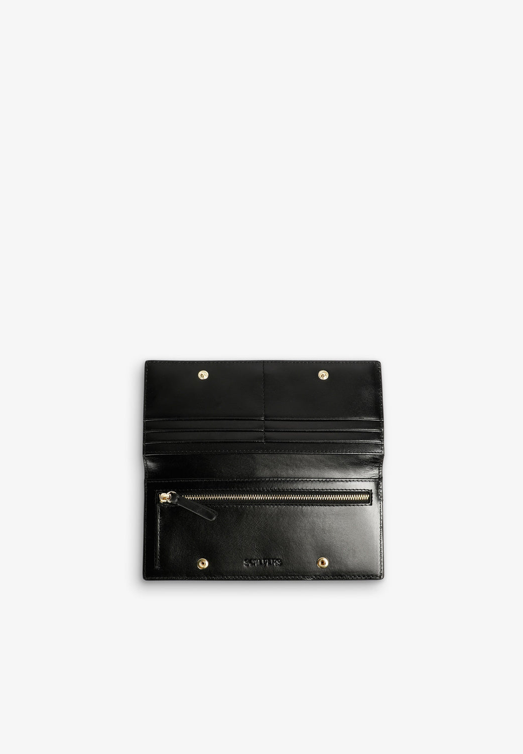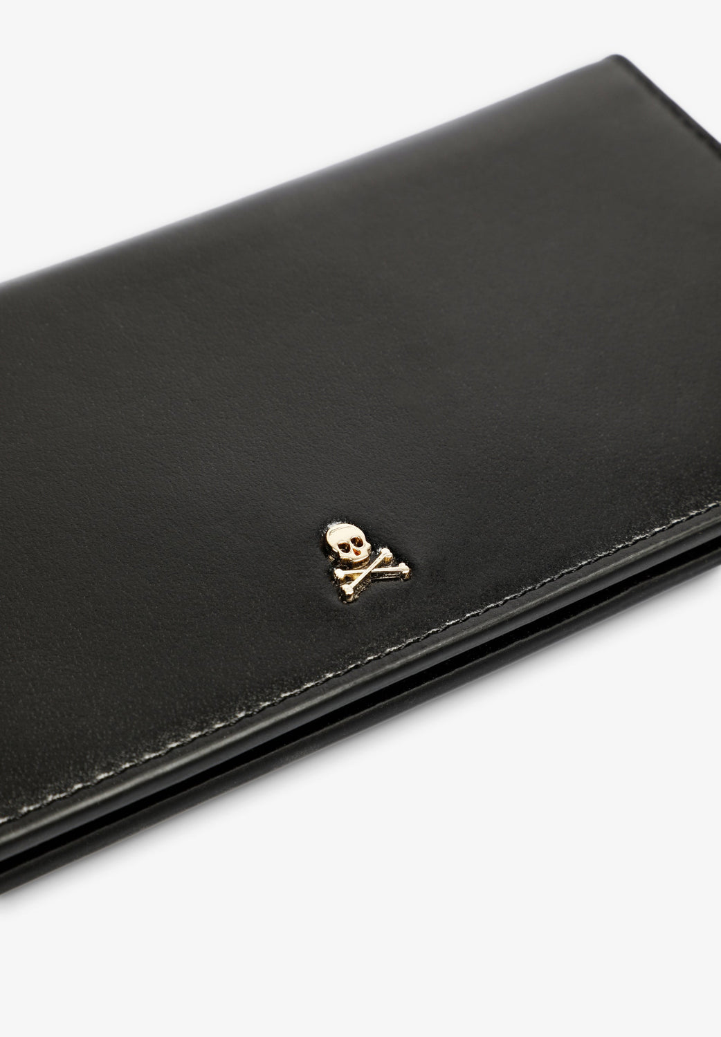 Carteira confecionada em 100% pele. Fecho com botões. Com compartimento interior com fecho de correr. Pormenor do logótipo no exterior e gravado no tom no interior.