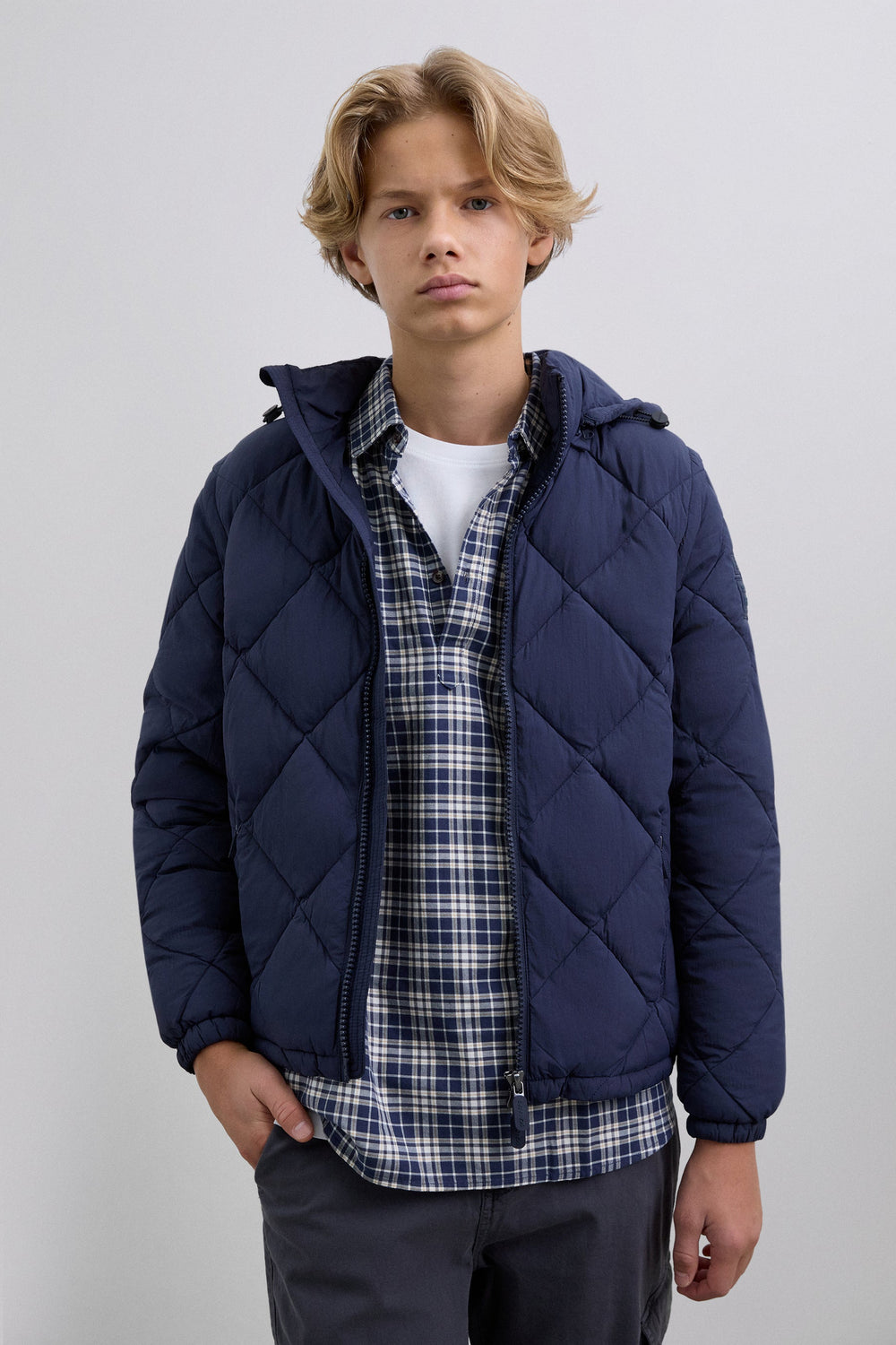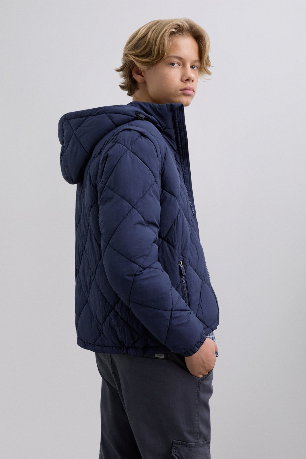 Blusão com capuz e manga comprida amovível. Fecho com fecho correr. Logótipo efeito de caucho na manga. Bolso frontal. Pormenor de logótipo na gola.
