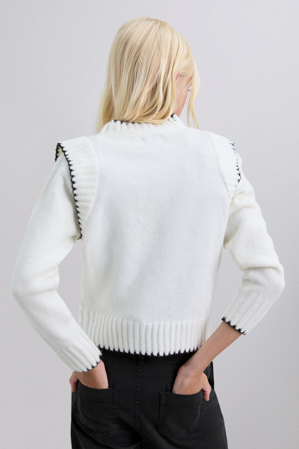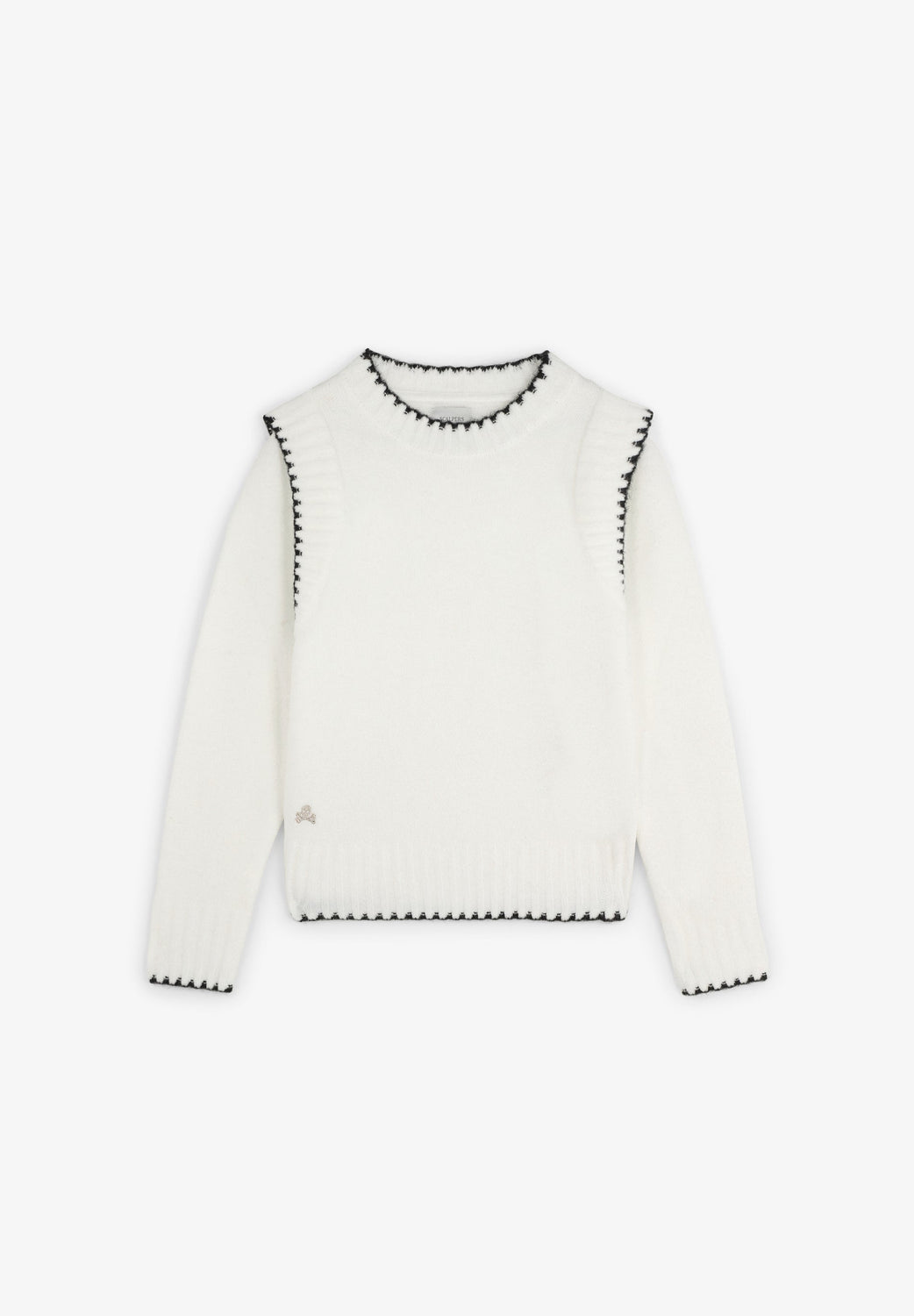 Sweater de malha. Decote redondo. Manga comprida. Pormenor de logótipo bordado a contrastar. Acabamentos em nervuras.