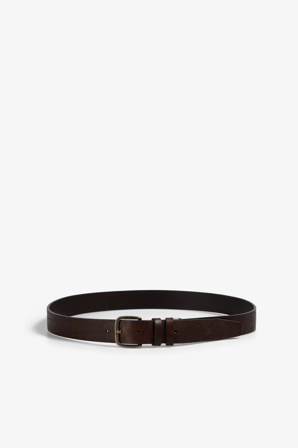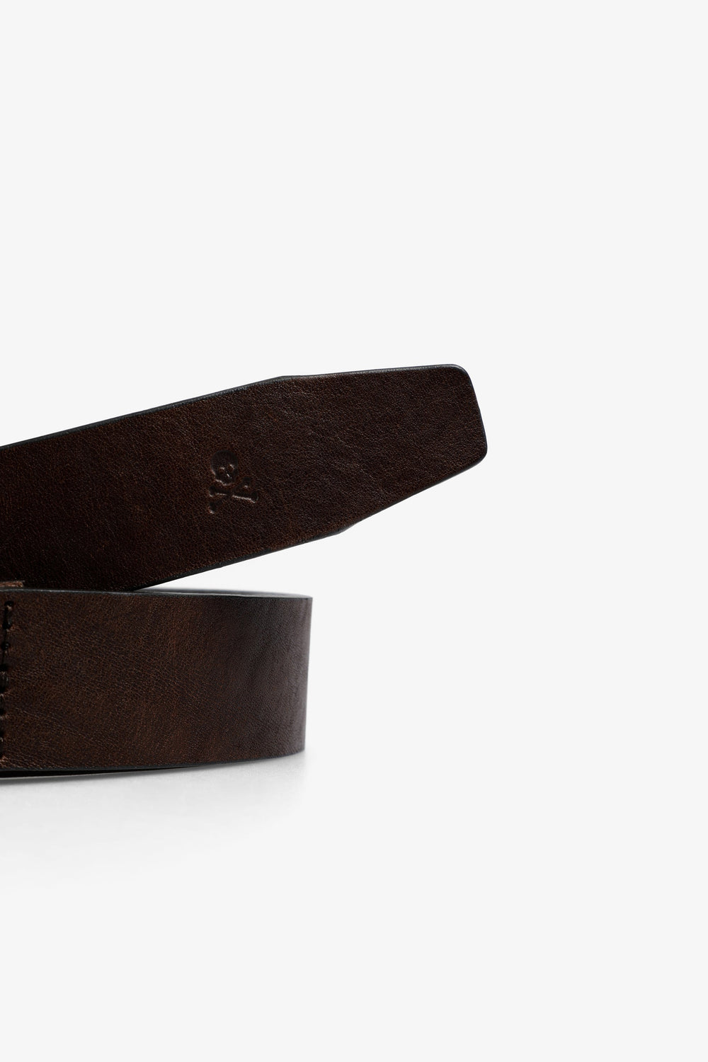 Cinto clássico confecionado em 100% pele. Pormenor de skull. Fecho com fivela metálica.