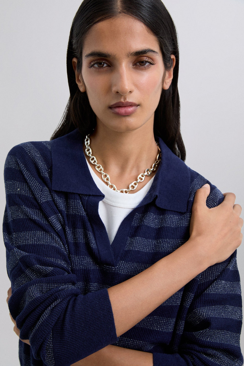 SWEATER CAMISA POLO ÀS RISCAS METALIZADA