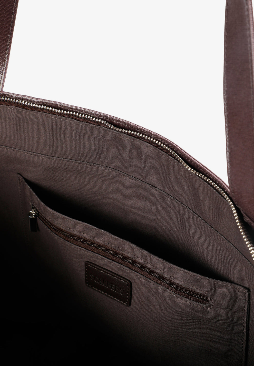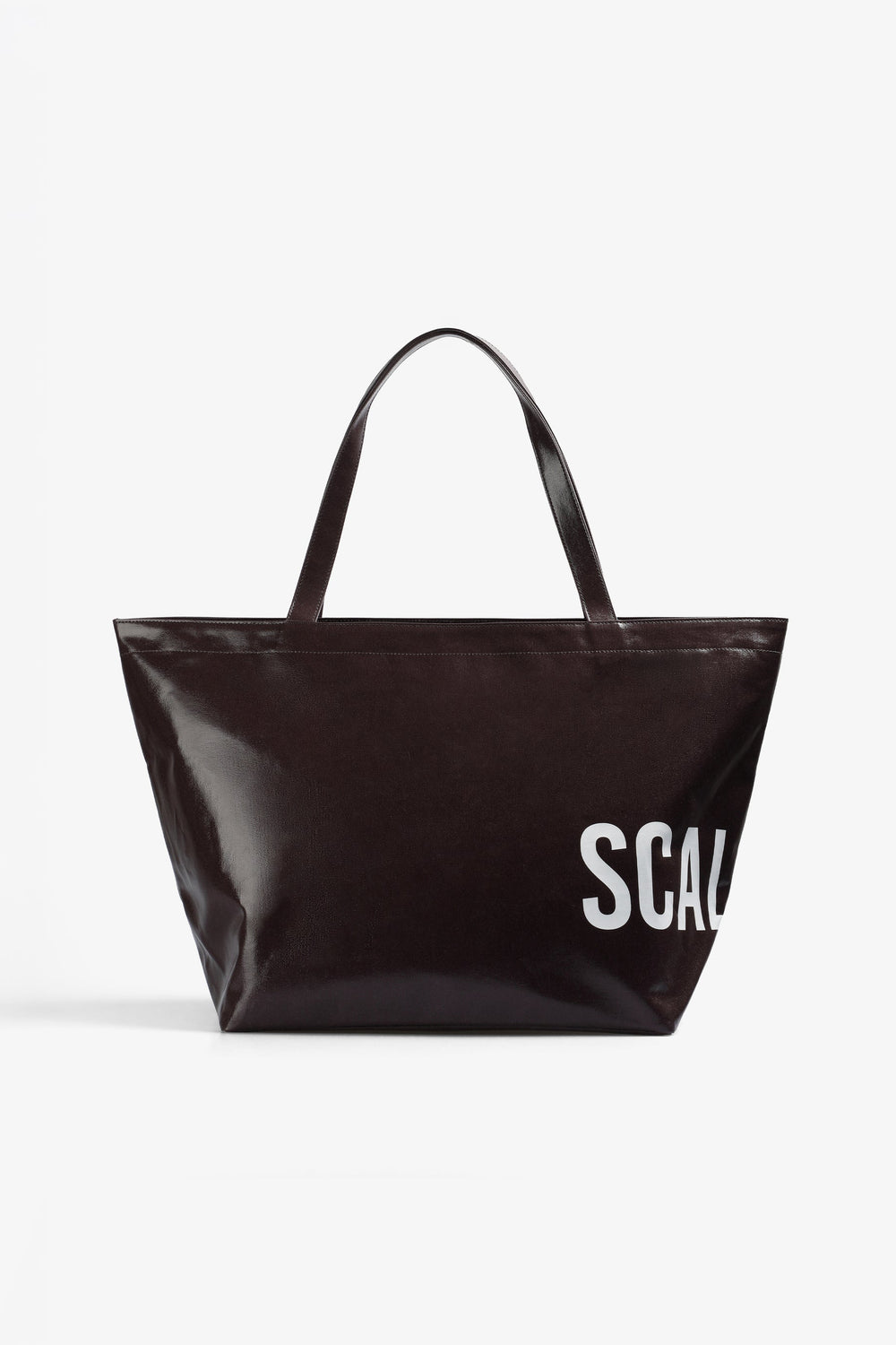 Bolsa shopper. Alça dupla. Padrão de logótipo. Fecho de correr. Bolso interior com fecho de com fecho correr e pormenor de logótipo.