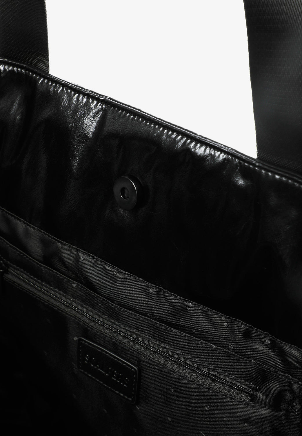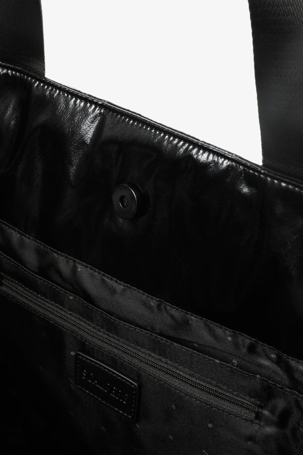 Bolsa de desporto confecionada em PU. Water resistant. Alça dupla comprida e curta. Pormenor do logótipo nas alças e skull metálica frontal no tom. Fecho com botão magnético. Bolso interior com fecho de correr e pormenor de remendo bordado com logótipo no tom.