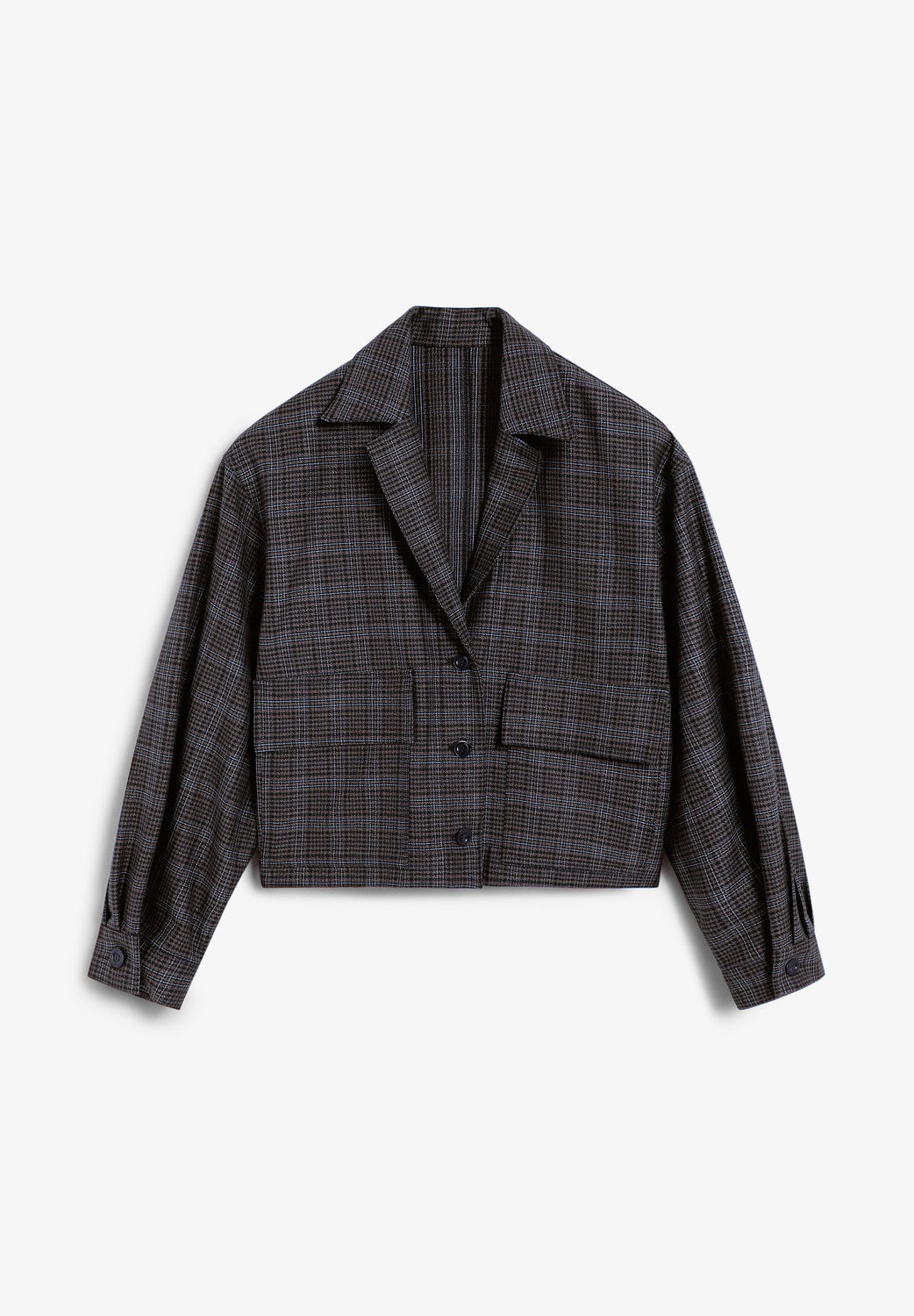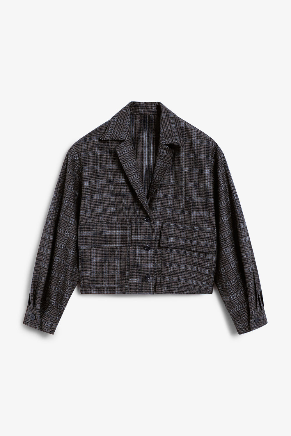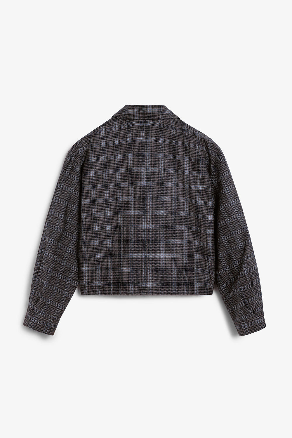 Cardigan com estampado xadrez. Gola de camisa. Mangas compridas. Ajustado na cintura. Punhos com fecho com botões. Fecho com botões à frente.