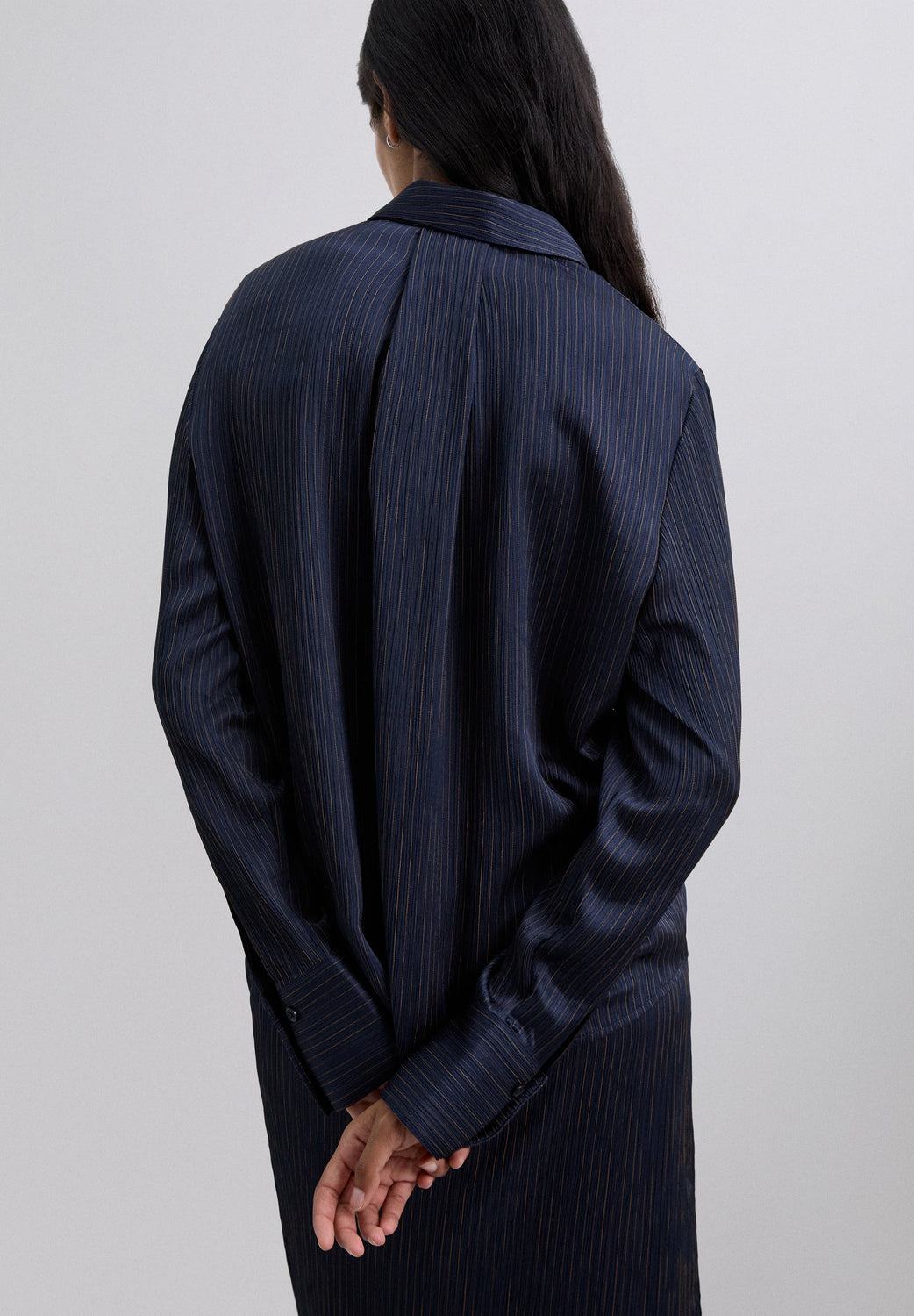 Camisa confecionada em tecido fluido com padrão de risca diplomática. Colarinho clássico. Fecho de botões e manga comprida com fecho de botão nos punhos.