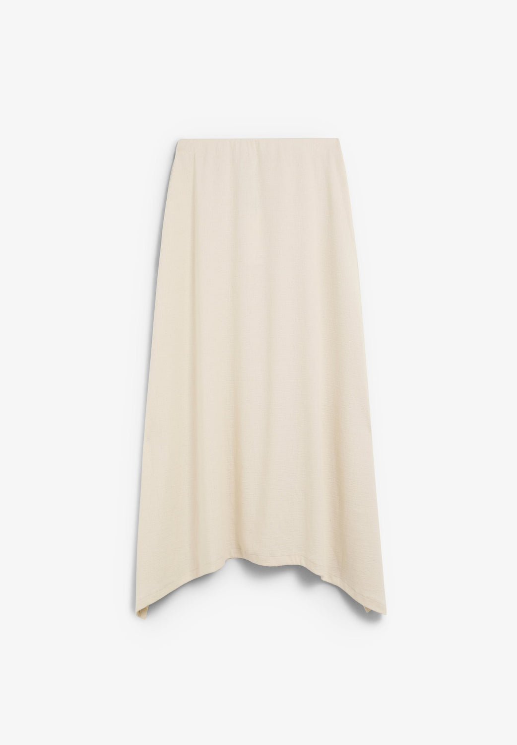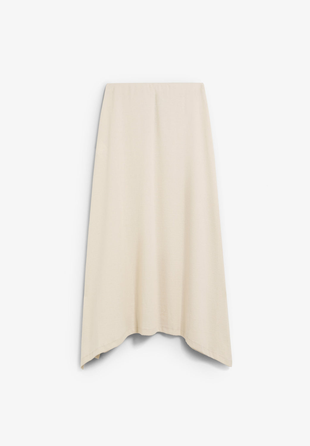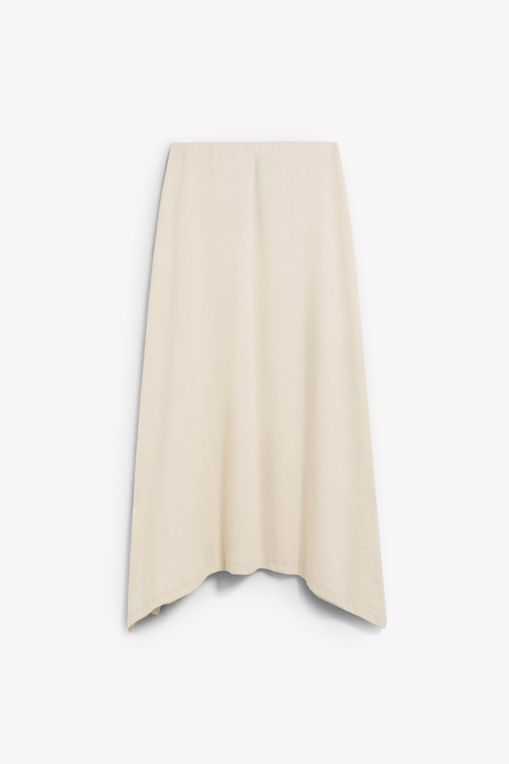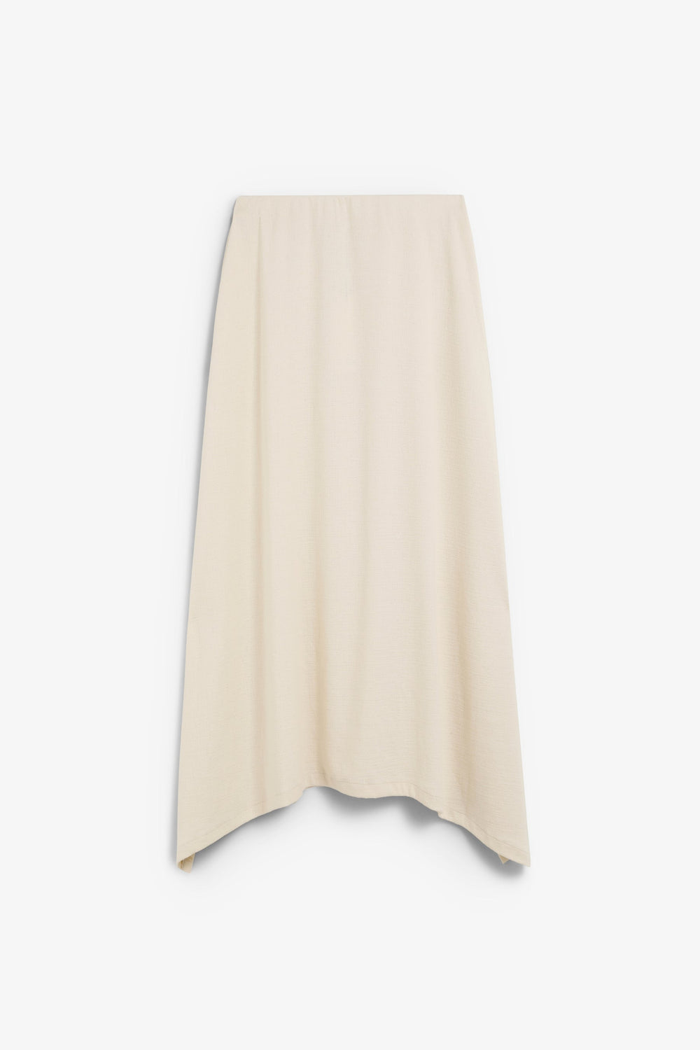 Saia midi de malha volumosa confecionada em 100% algodão. Regular fit, cós elástico e costuras marcadas. Bainha assimétrica.