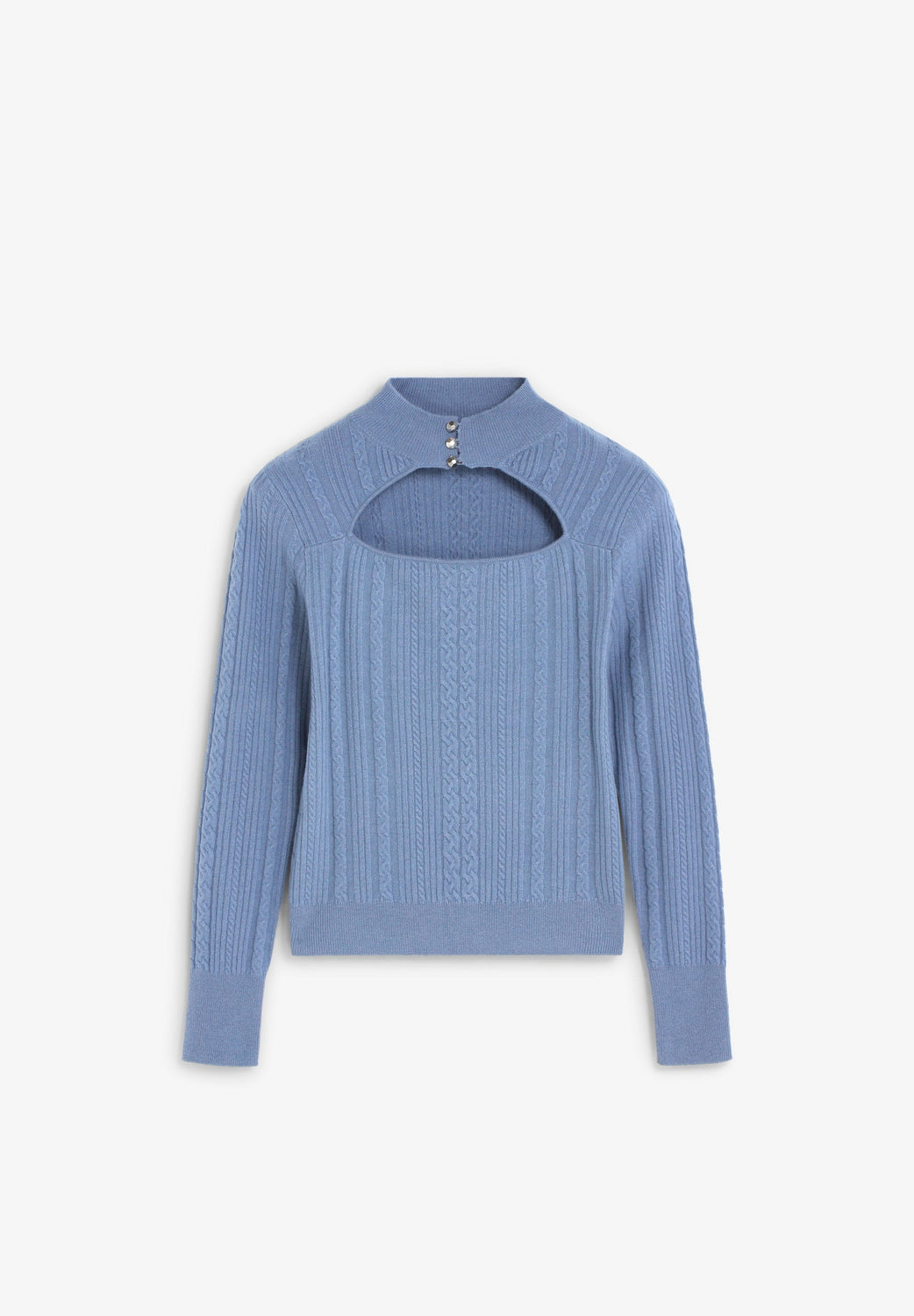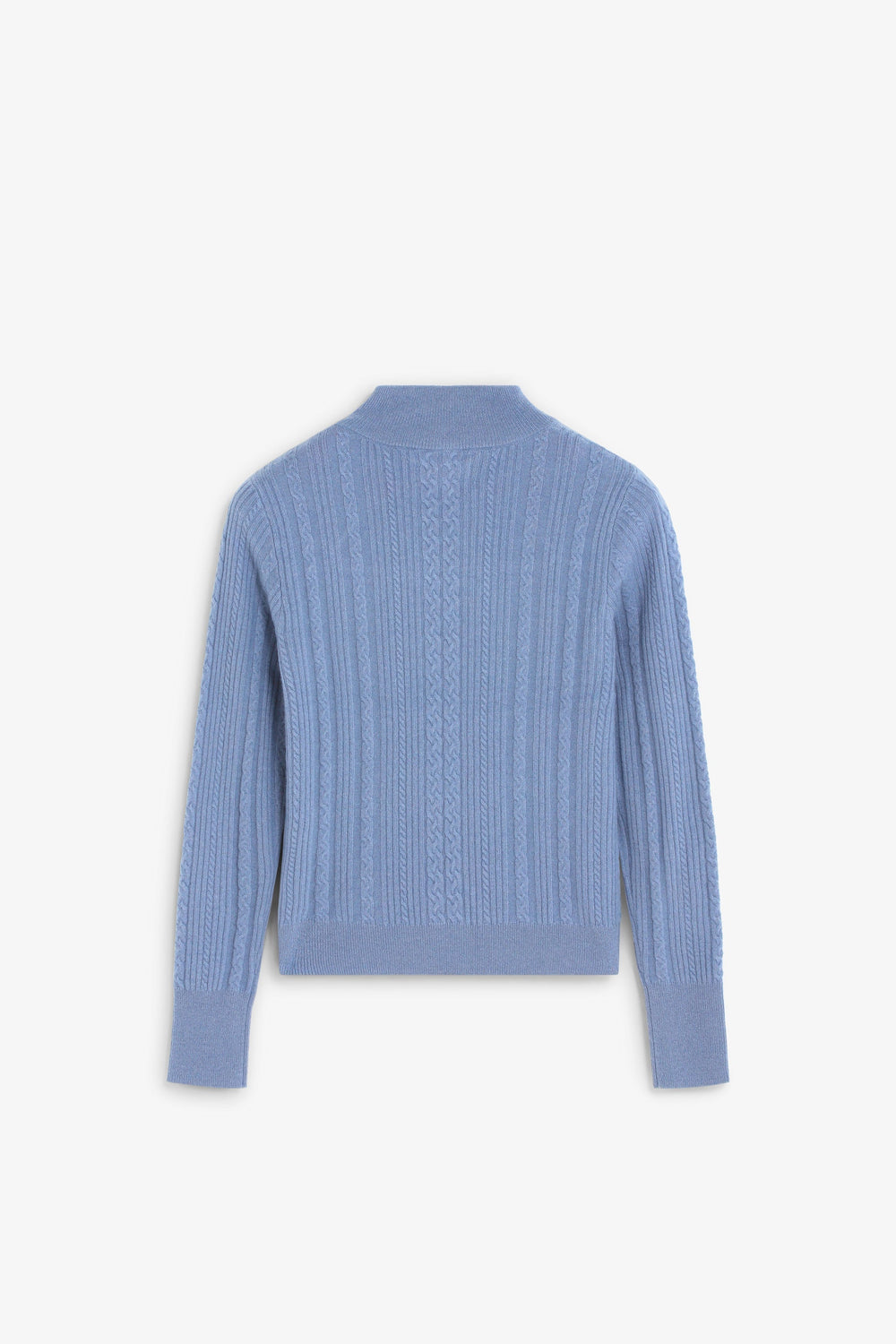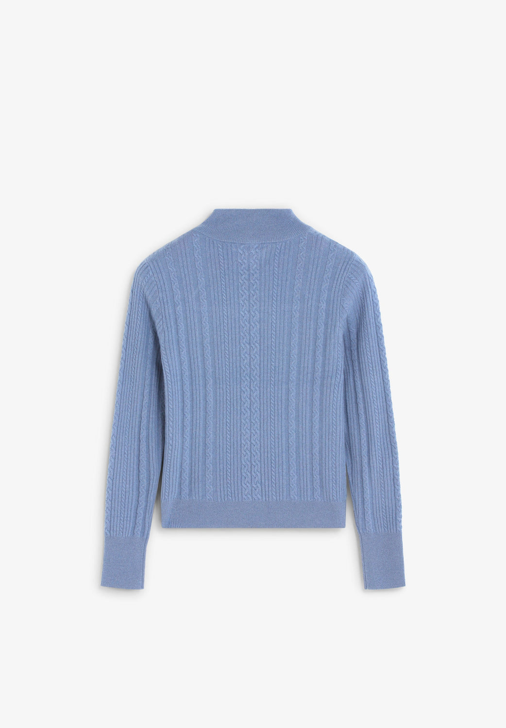 Sweater malha de cabo confecionada em mistura de lã e caxemira. Corte slim fit. Gola alta com fecho de botões. Abertura no decote.