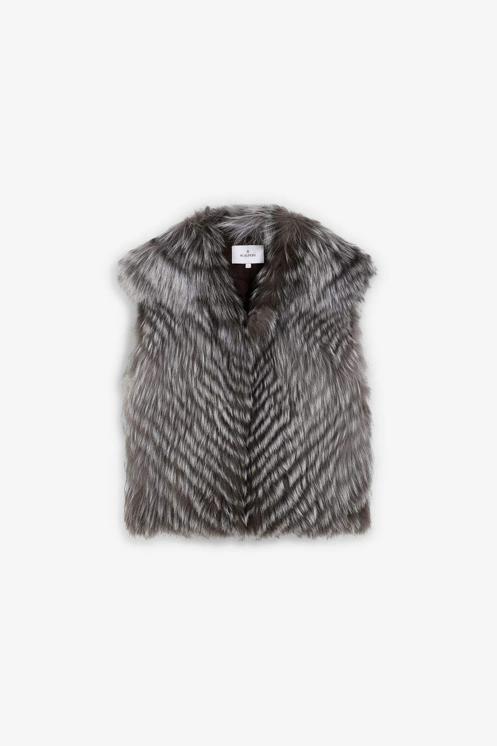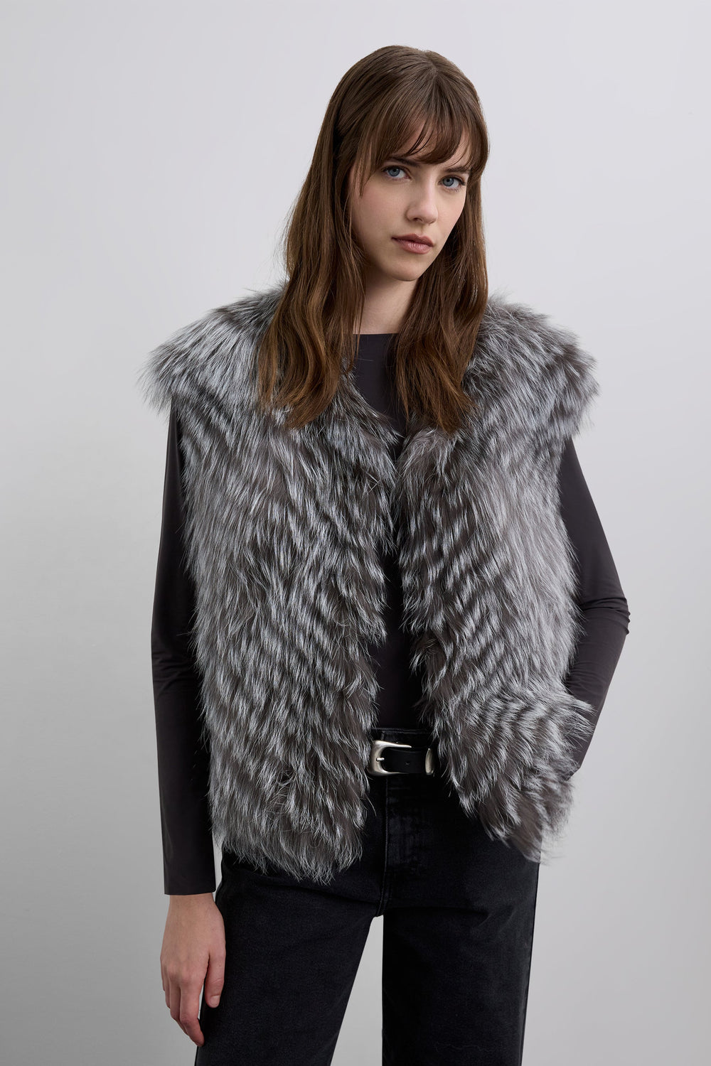 Colete confecionado em 100% pelo. Corte slim fit. Decote redondo. Fecho com gancho oculto