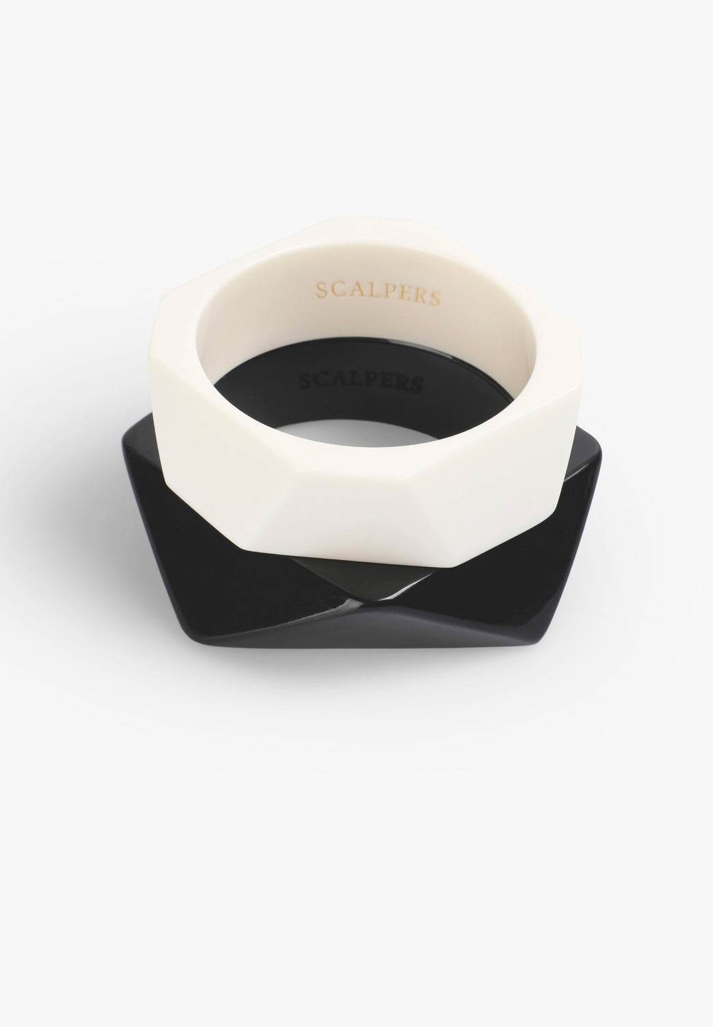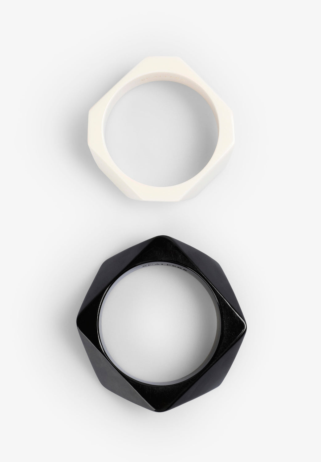 Braceletes confecionadas 100% em Resina. Pormenor de logótipo em contraste.