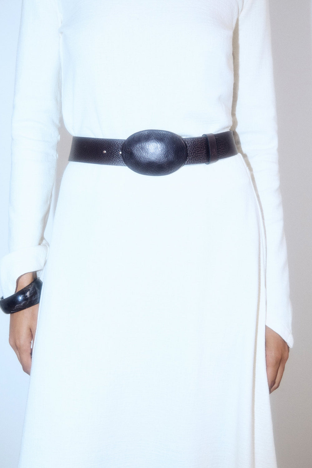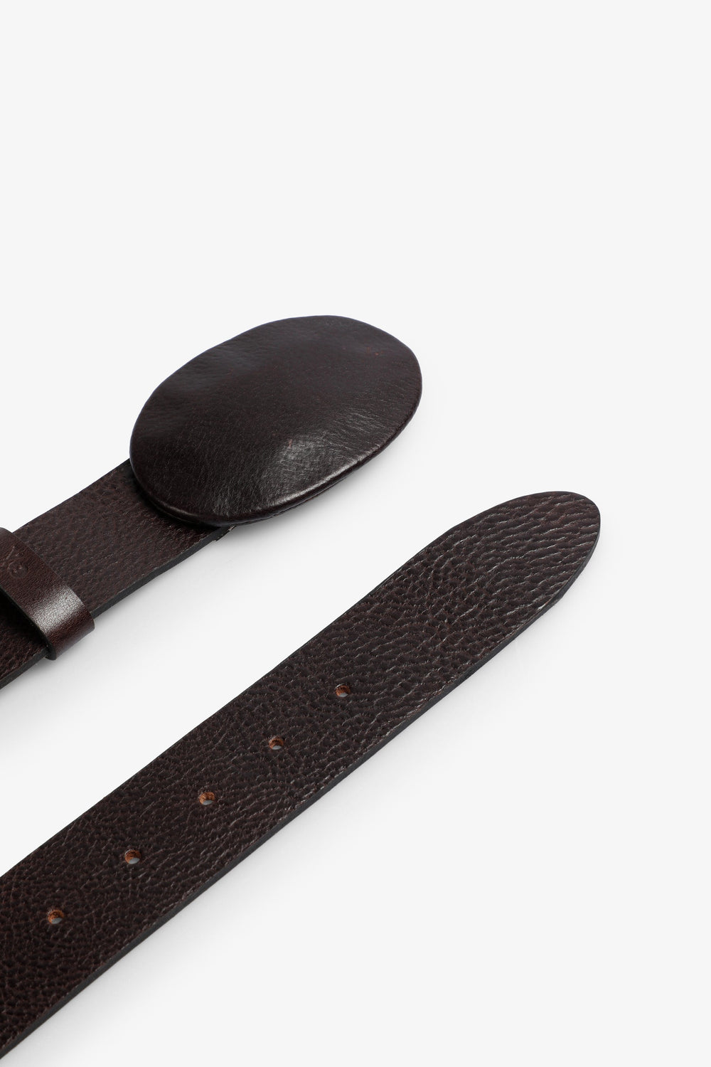 Cinto confecionado em 100% pele com fivela em pele ovalada.