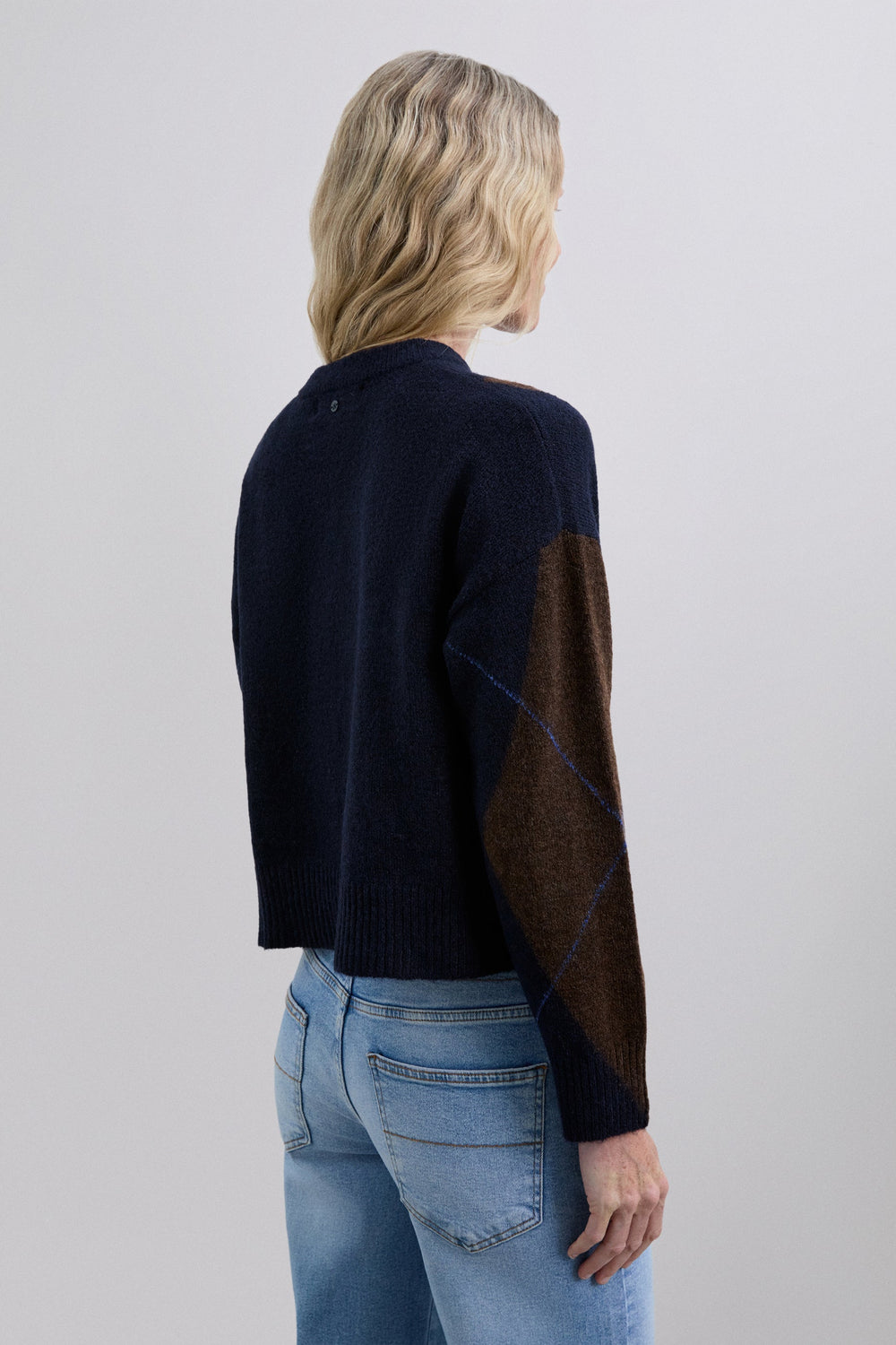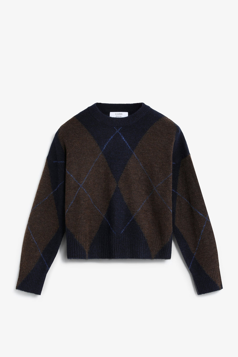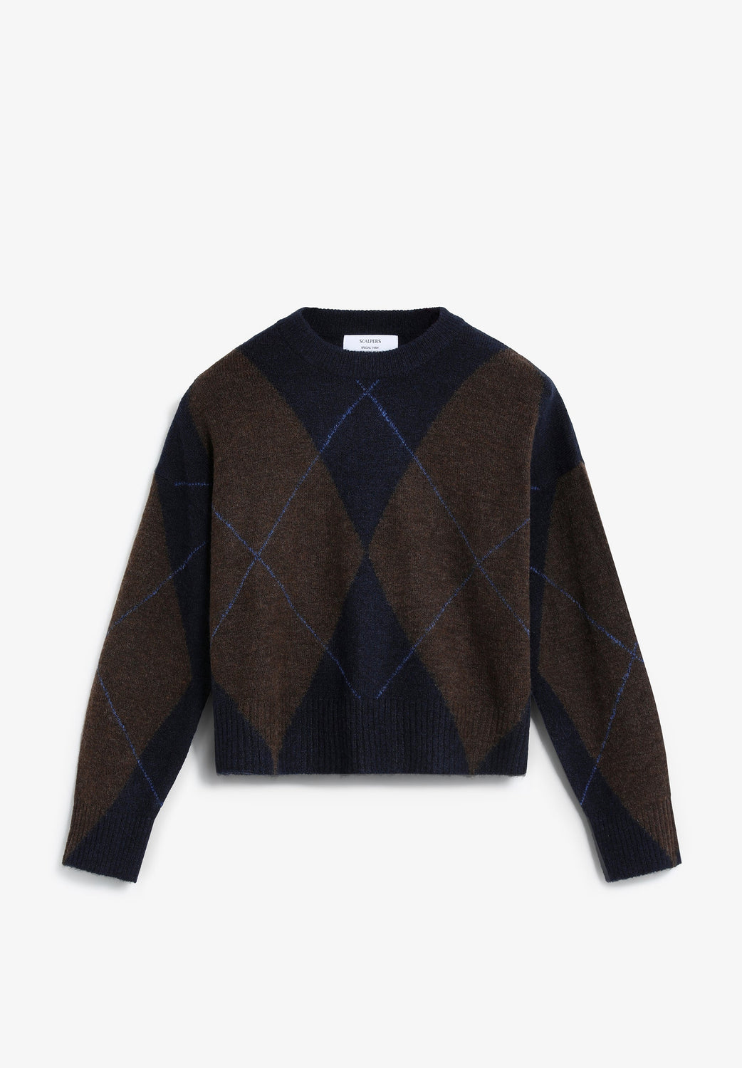 Sweater confecionada em tecido com mistura de lã. Padrão de textura diamante. Regular fit. Decote redondo com nervuras. Manga comprida com punhos terminados em nervuras.