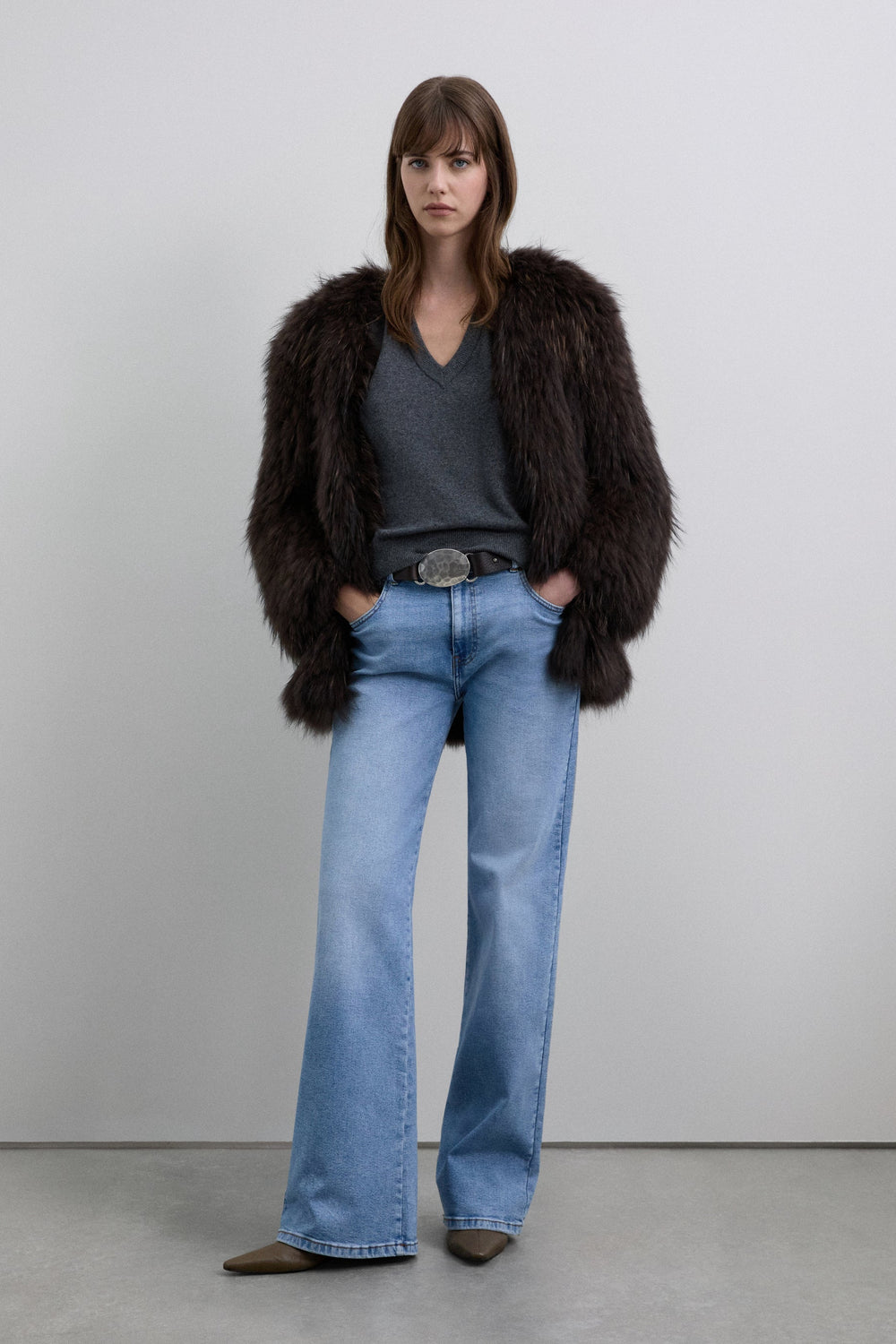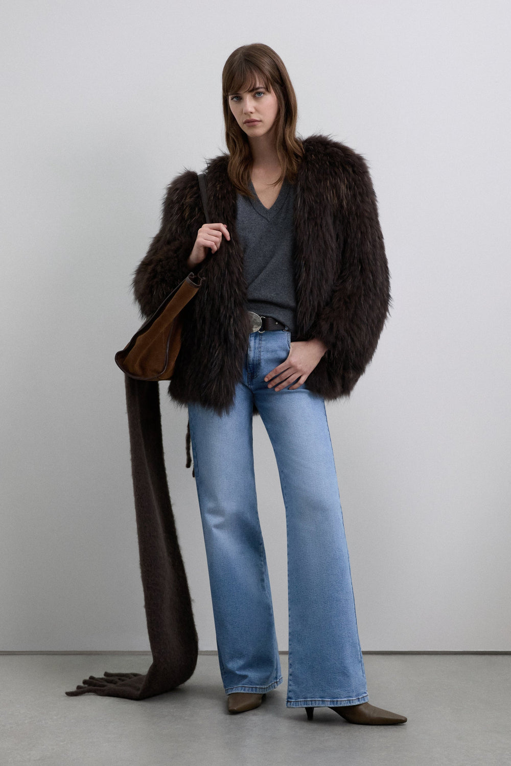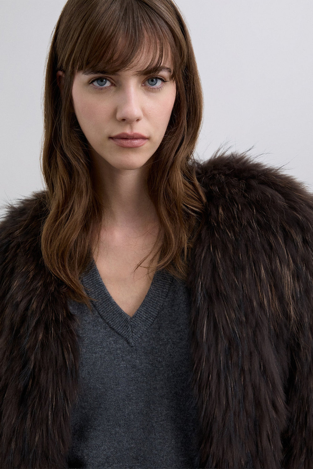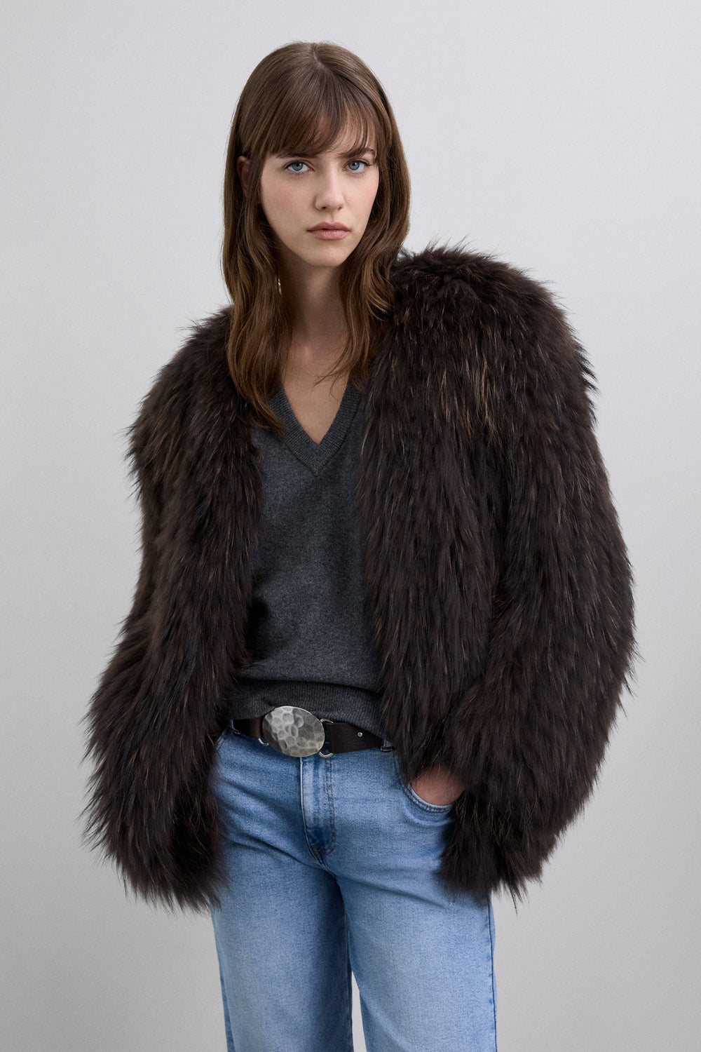 Casaco premium confecionado em 100% pelo. Regular fit. Decote em V. Manga comprida. Fecho com colchetes.