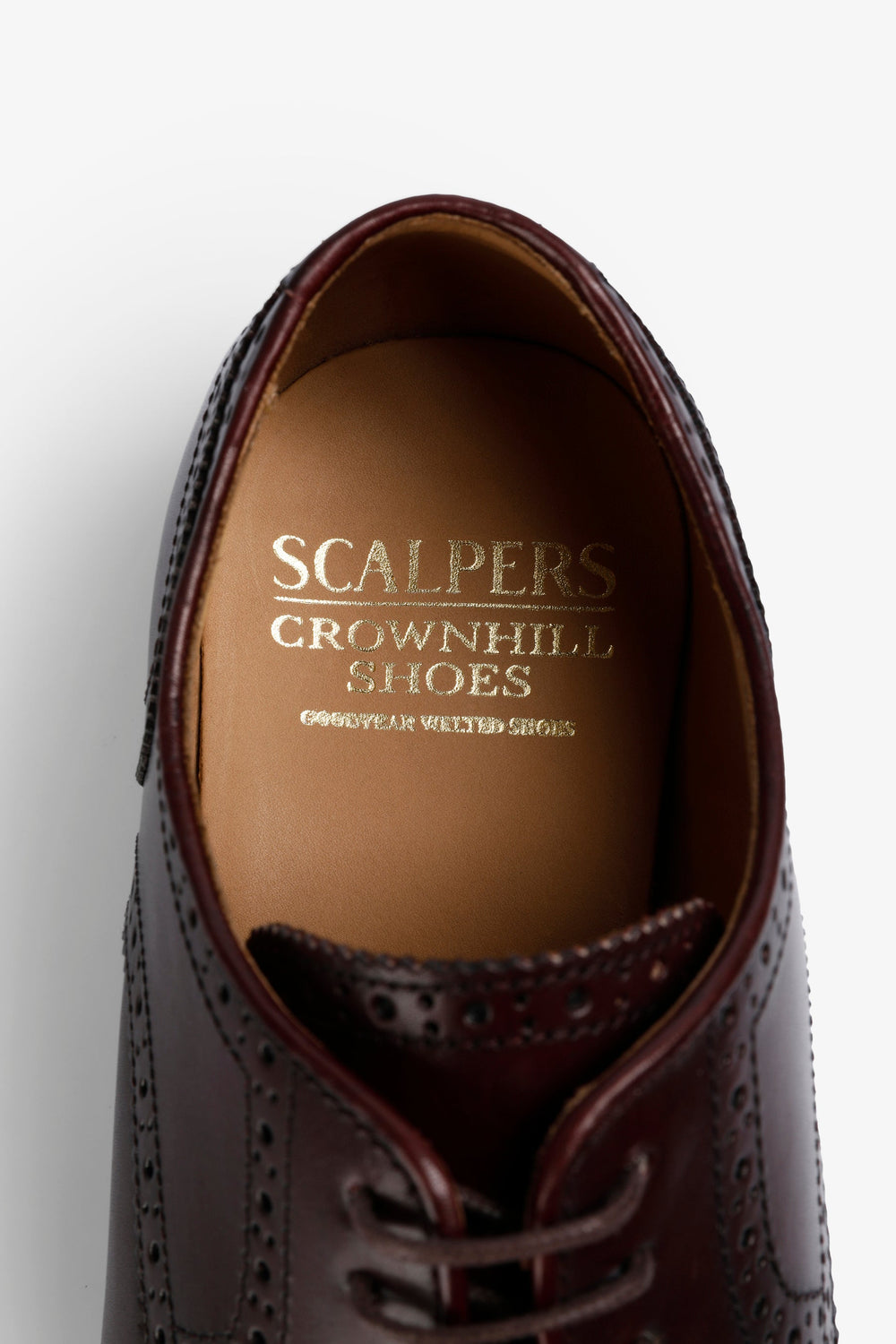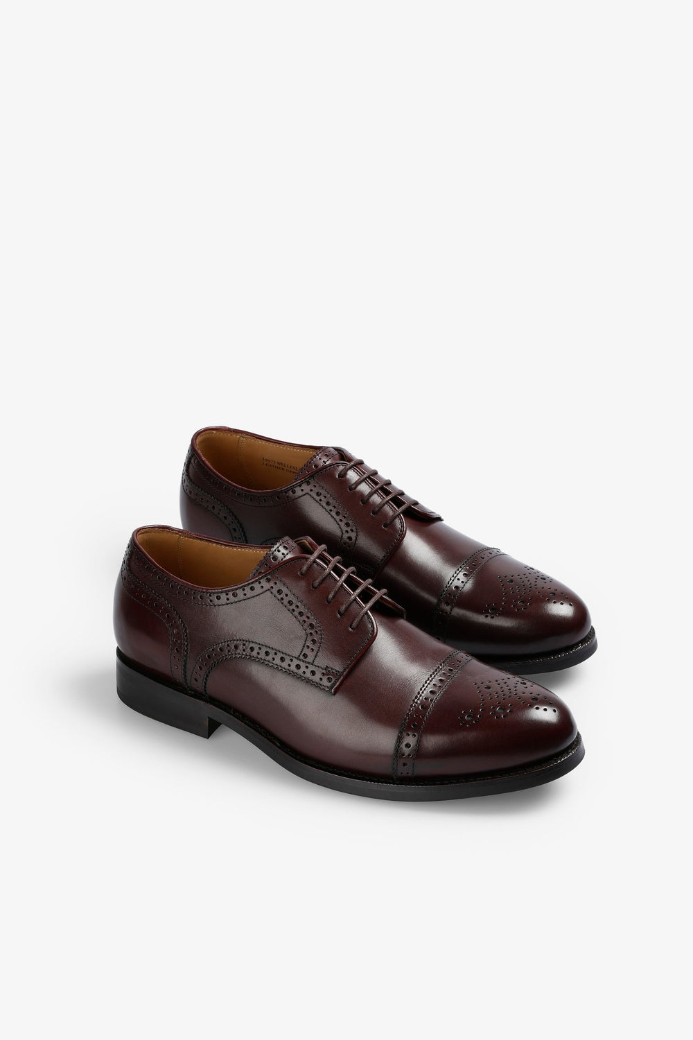 Sapatos Derby Brogue confecionados em 100% pele de elevada qualidade. Construção Goodyear Welt. Fecho com cordões no tom. Gravação de logótipo na palmilha.