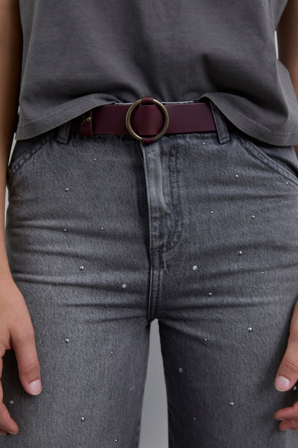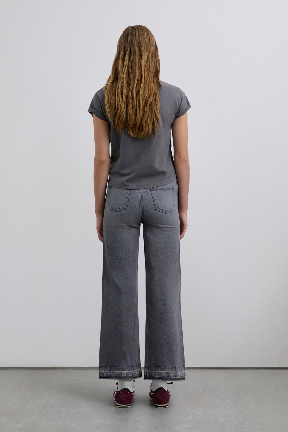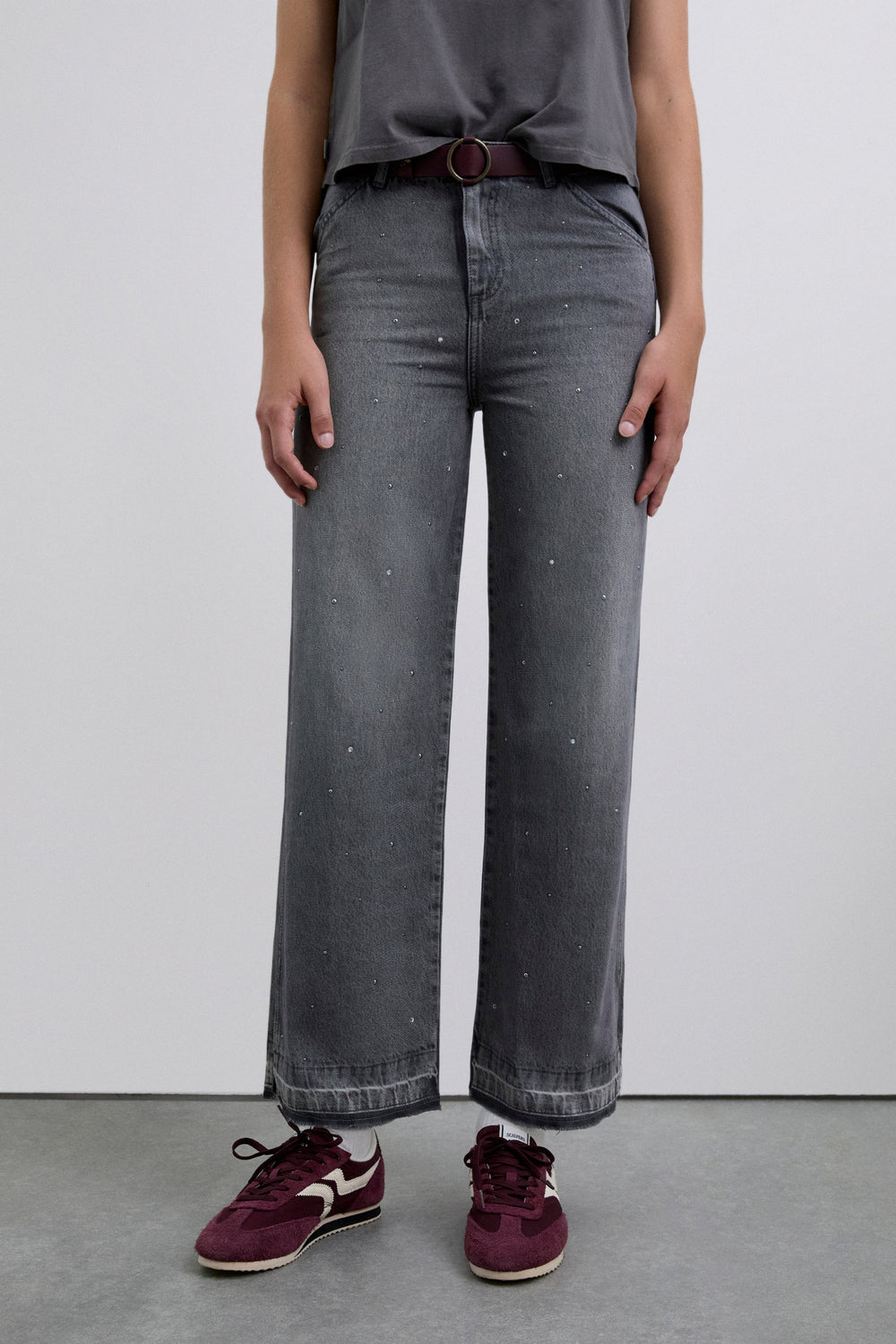 Calças confecionadas em 100% algodão BCI. Padrão com tachas. Dois bolsos à frente e atrás. Costuras na bainha.