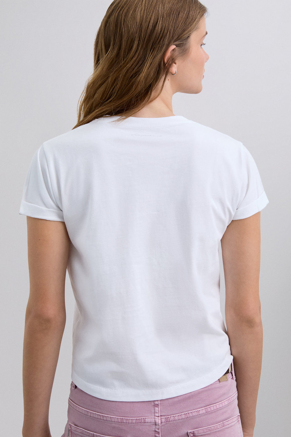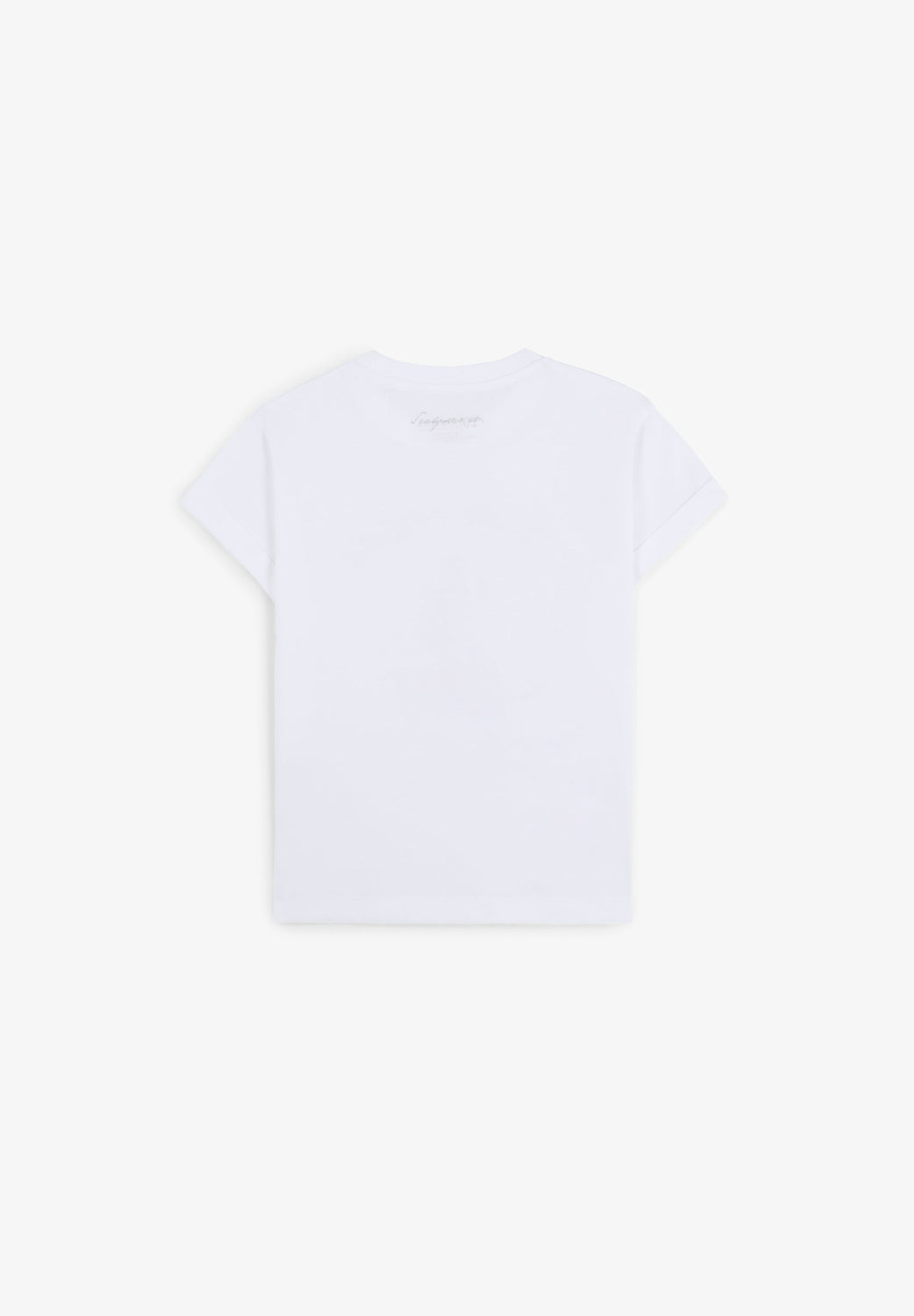 T-shirt confecionada em 100% algodão BCI. Manga curta. Padrão à frente e atrás com logótipo.