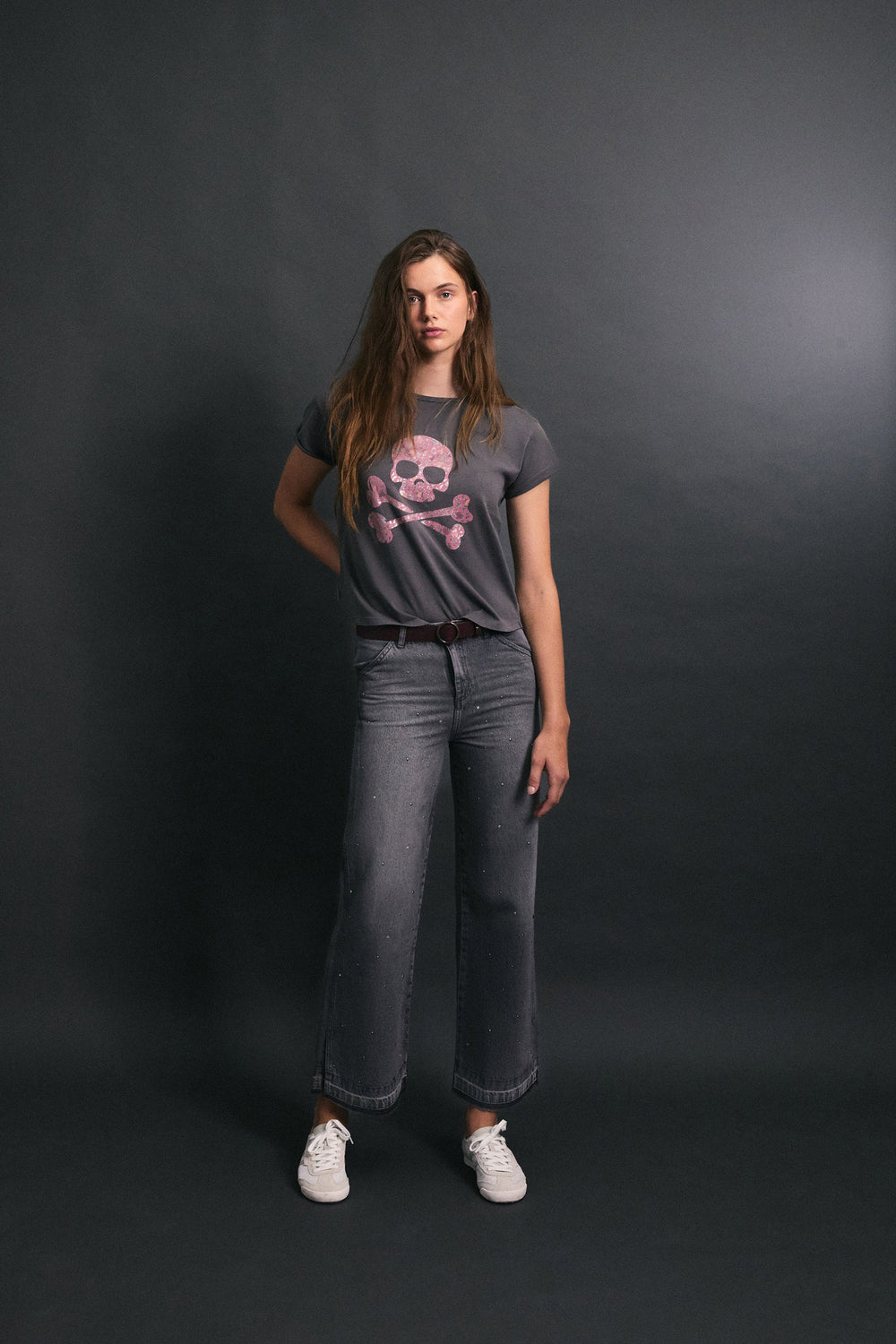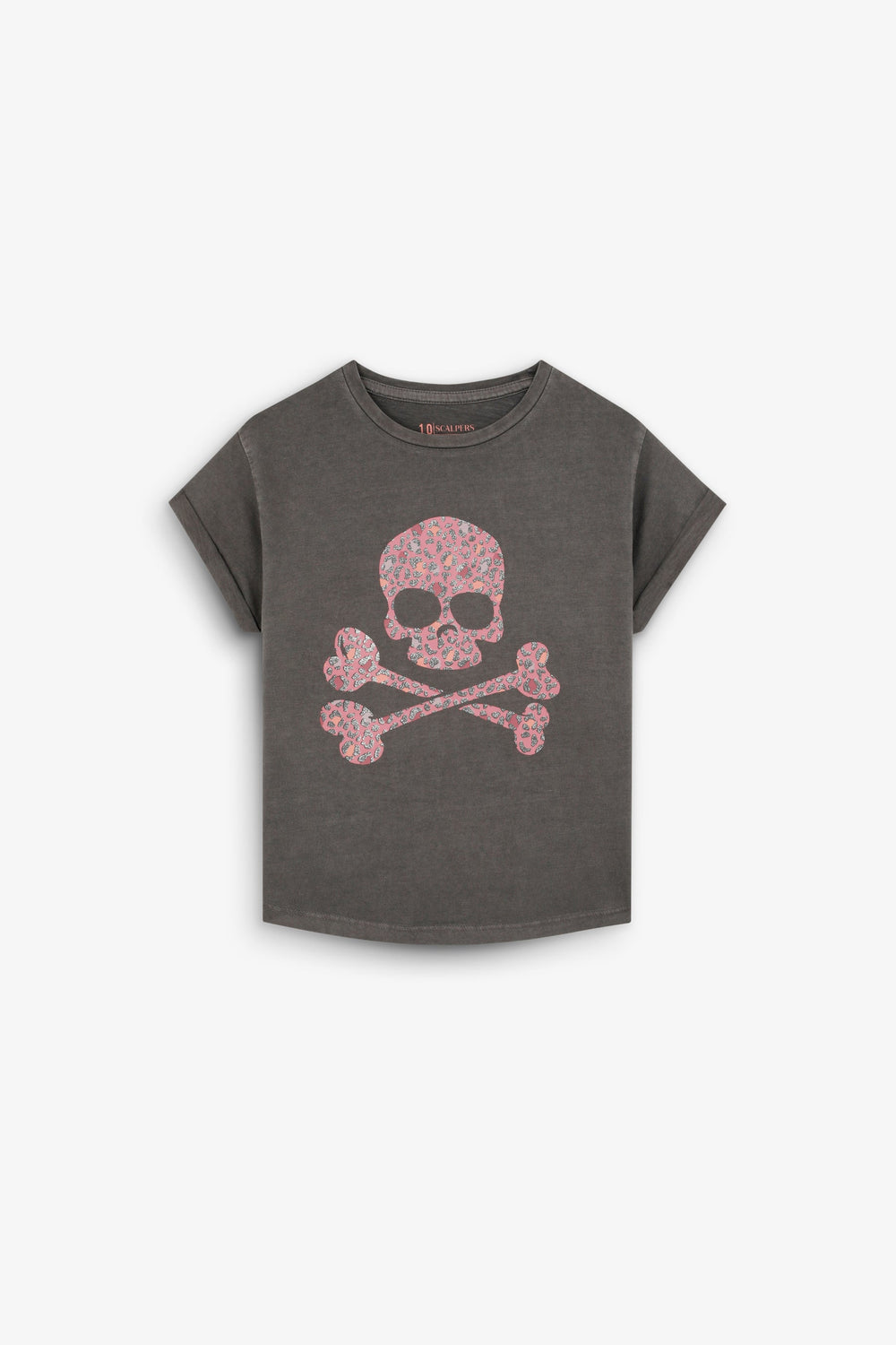 T-shirt confecionada em 100% algodão BCI. Corte regular fit, decote redondo e manga curta. Pormenor de skull frontal em contraste.