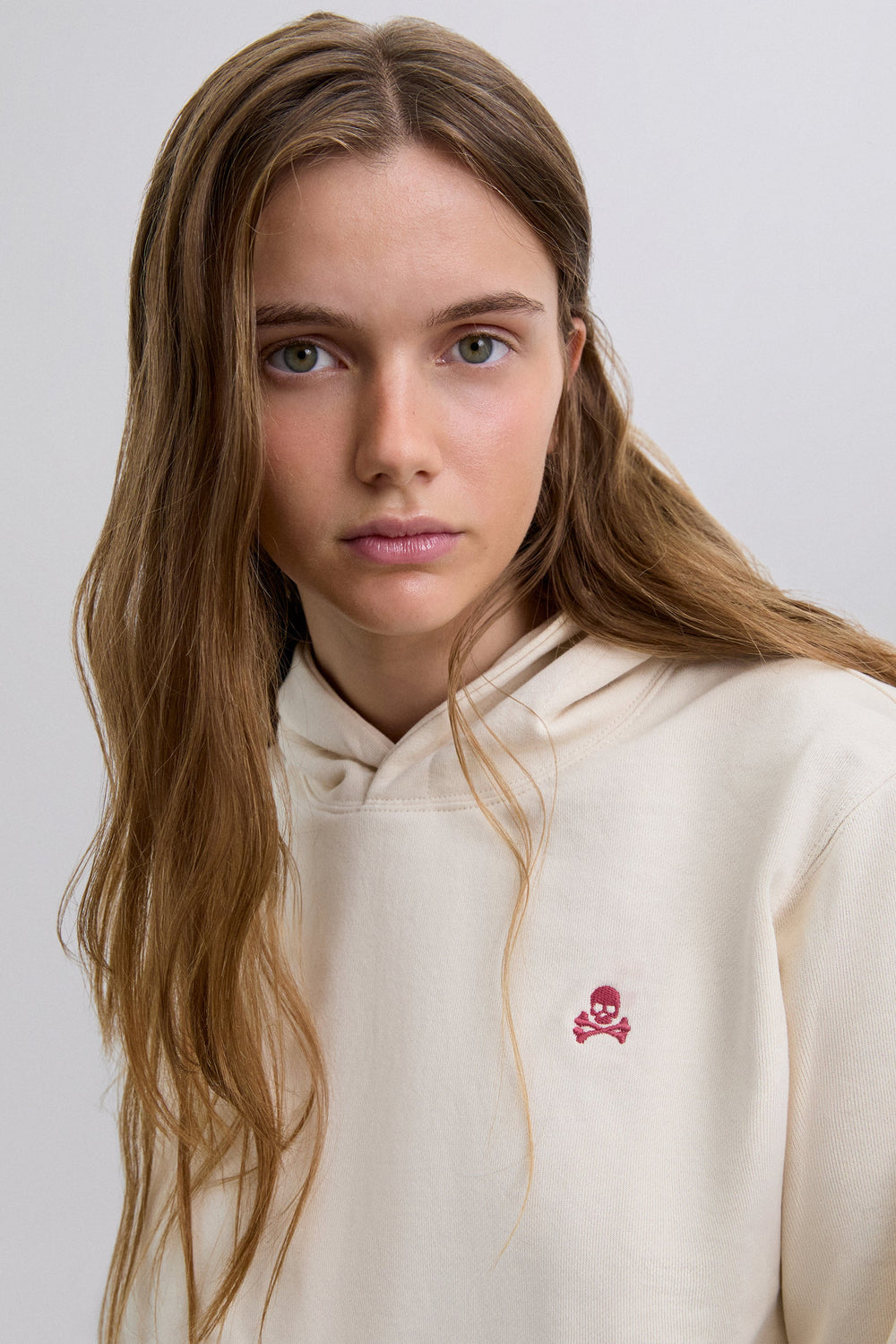 Sweatshirt com corte confecionada em 100% algodão BCI. Manga comprida. Pormenor de skull bordada em contraste no peito e padrão traseiro com logótipo. Bolso frontal tipo canguru com pormenor de logótipo em contraste. Cintura e punhos acabados em nervuras.