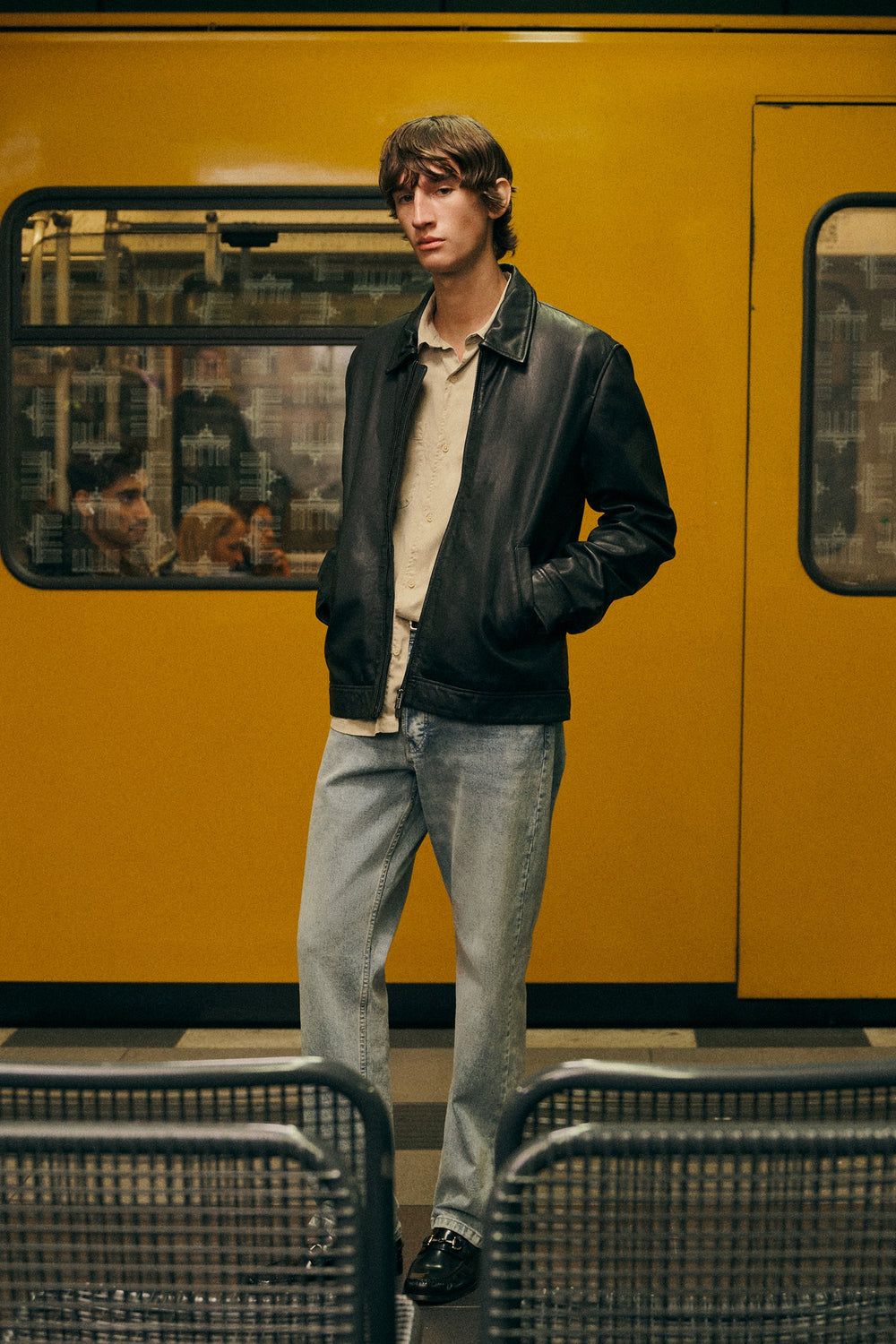 Jeans confecionados em algodão BCI ligeiramente elástico. Regular fit, fecho com botão e zip e bolsos laterais e atrás. Presilhas na cintura.