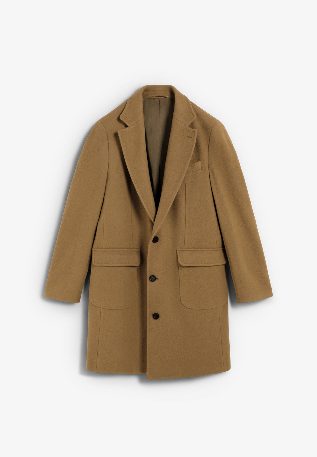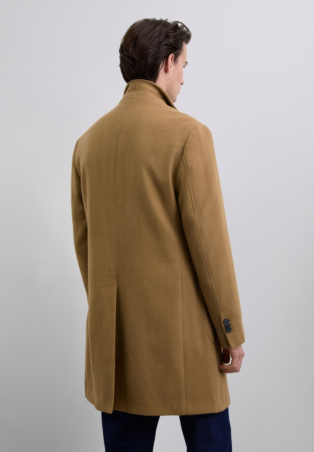 Casaco comprido confecionado em mistura de lã virgem de elevada qualidade. Gola lapela. Manga comprida com punho abotoado. Bolsos à frente com aba dupla. Fecho por abotoadura frontal. Abertura central traseira.
