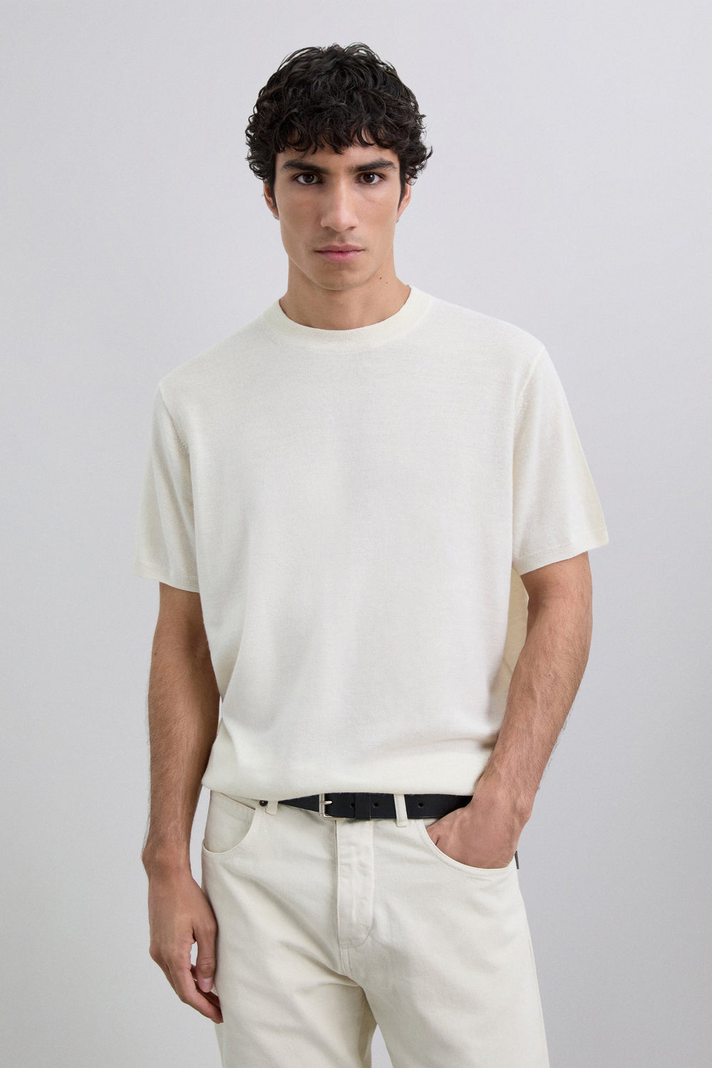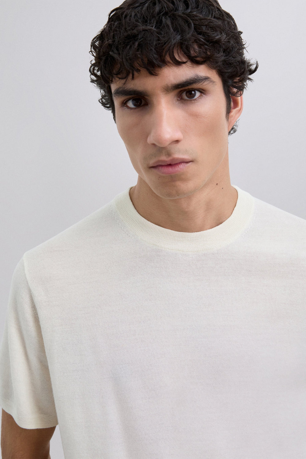 T-shirt confecionada em 100% lã. Regular fit. Decote redondo. Manga curta.