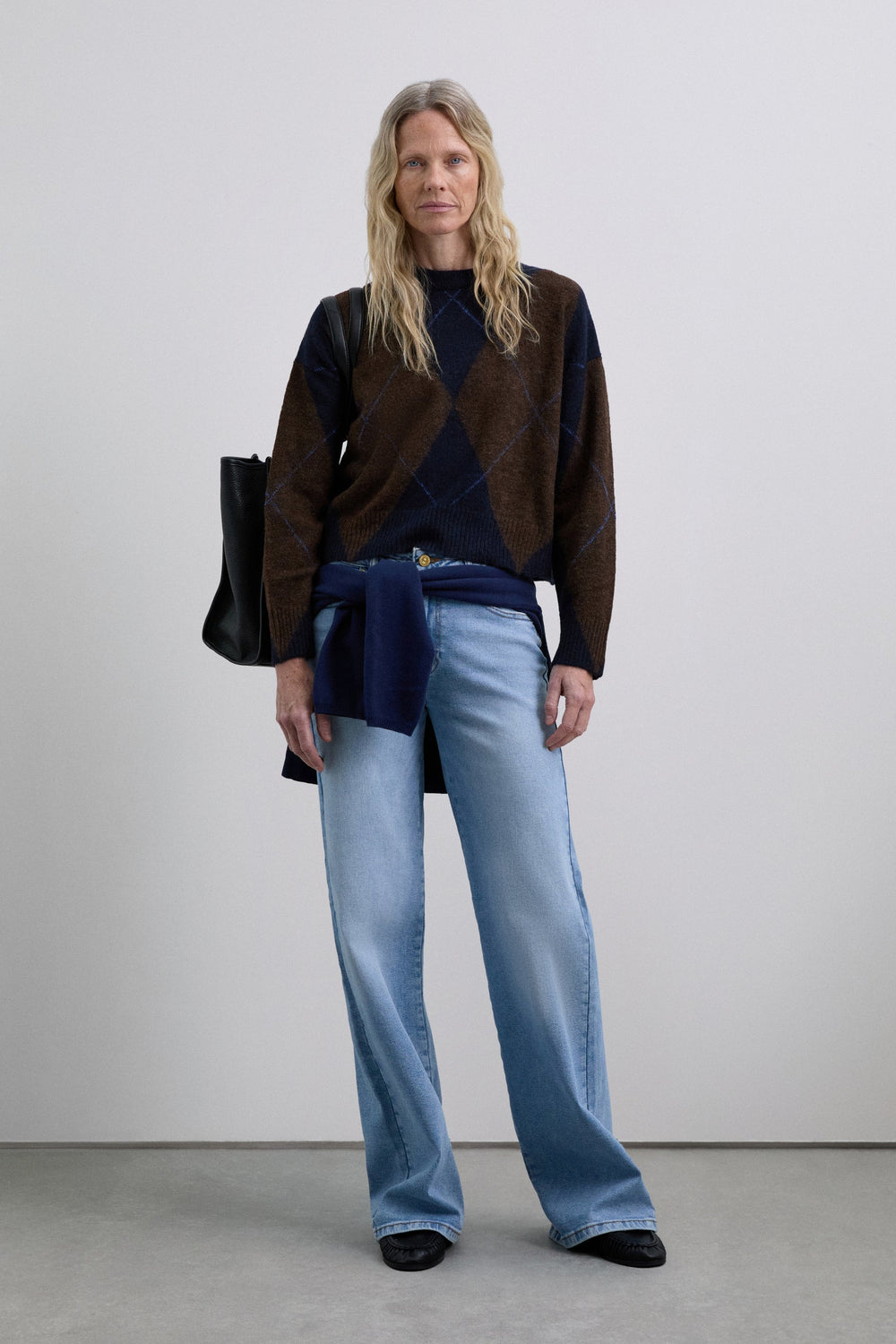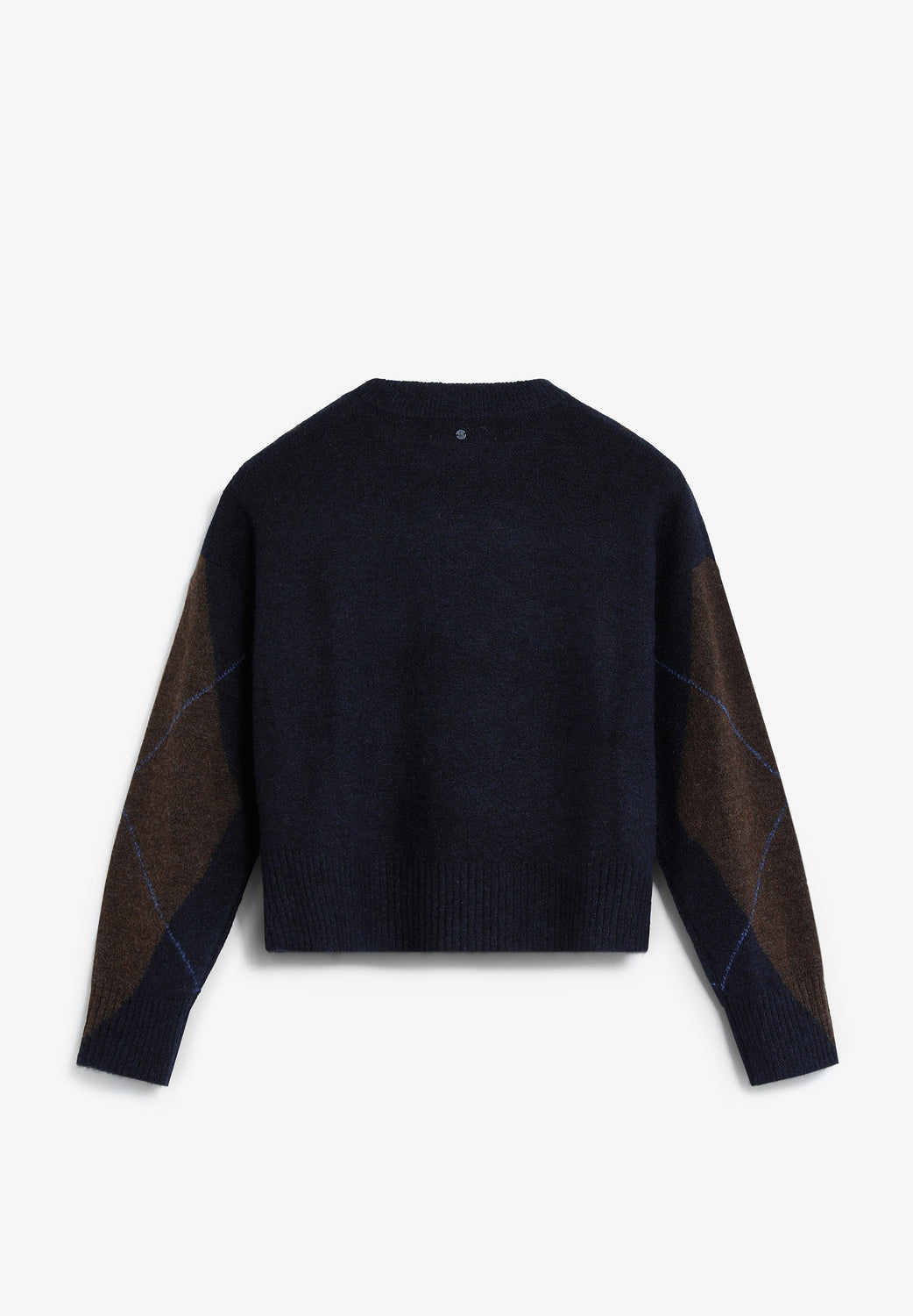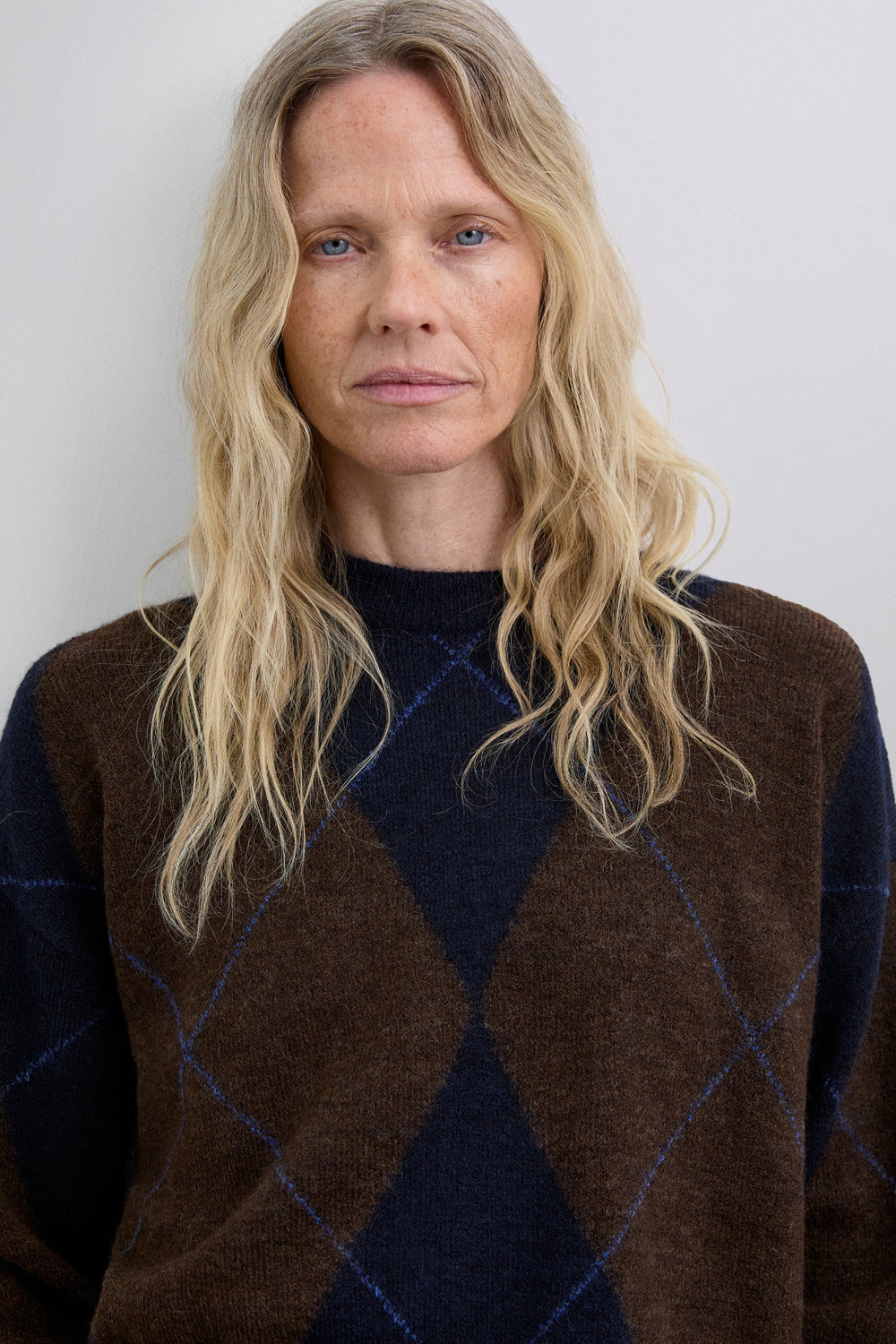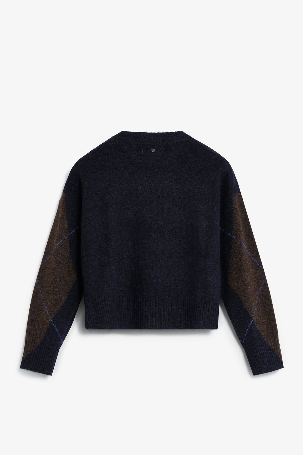 Sweater confecionada em tecido com mistura de lã. Padrão de textura diamante. Regular fit. Decote redondo com nervuras. Manga comprida com punhos terminados em nervuras.