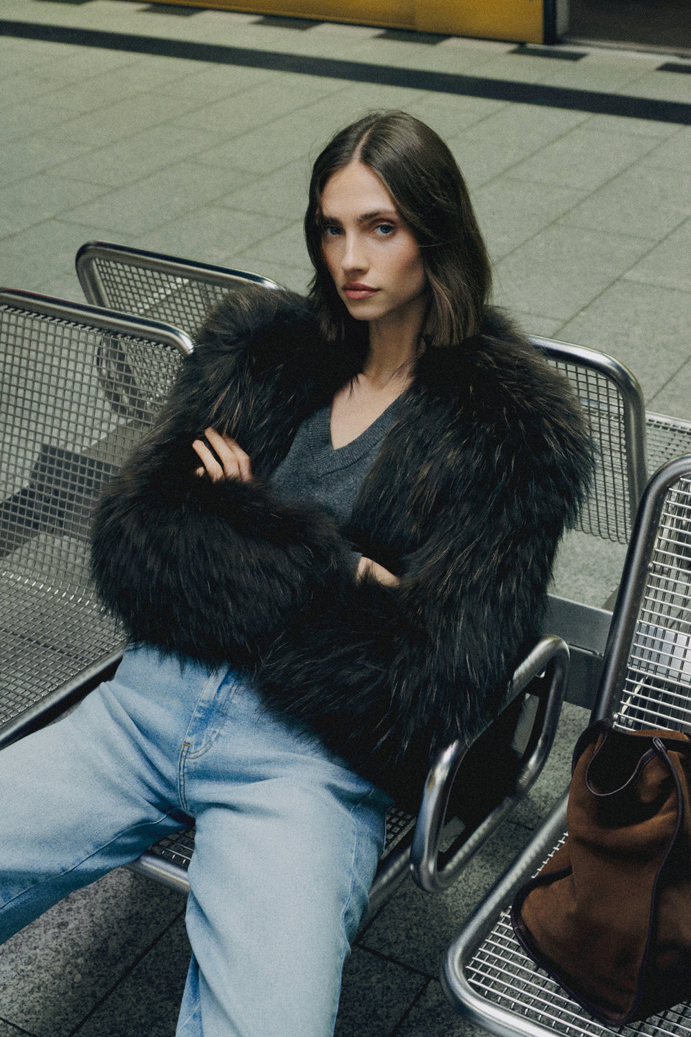 Casaco premium confecionado em 100% pelo. Regular fit. Decote em V. Manga comprida. Fecho com colchetes.