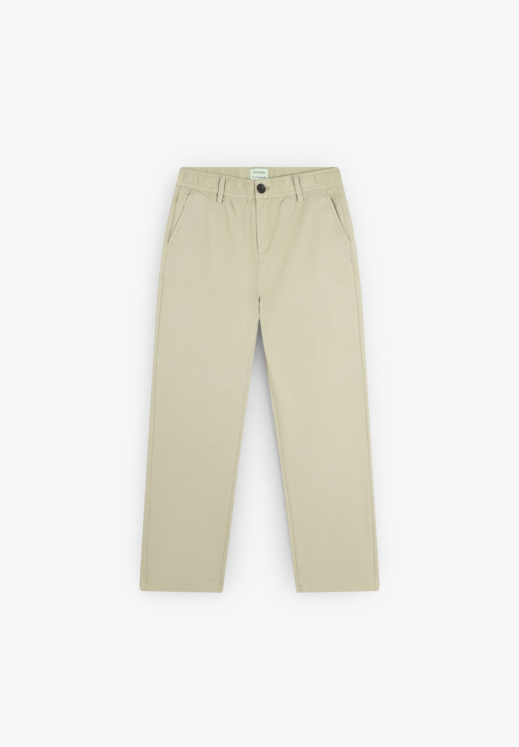 Calças chino confecionadas em 100% algodão BCI. Dois bolsos à frente e atrás. Fecho com botão e presilhas na cintura. Pormenor de etiqueta com logótipo no bolso.