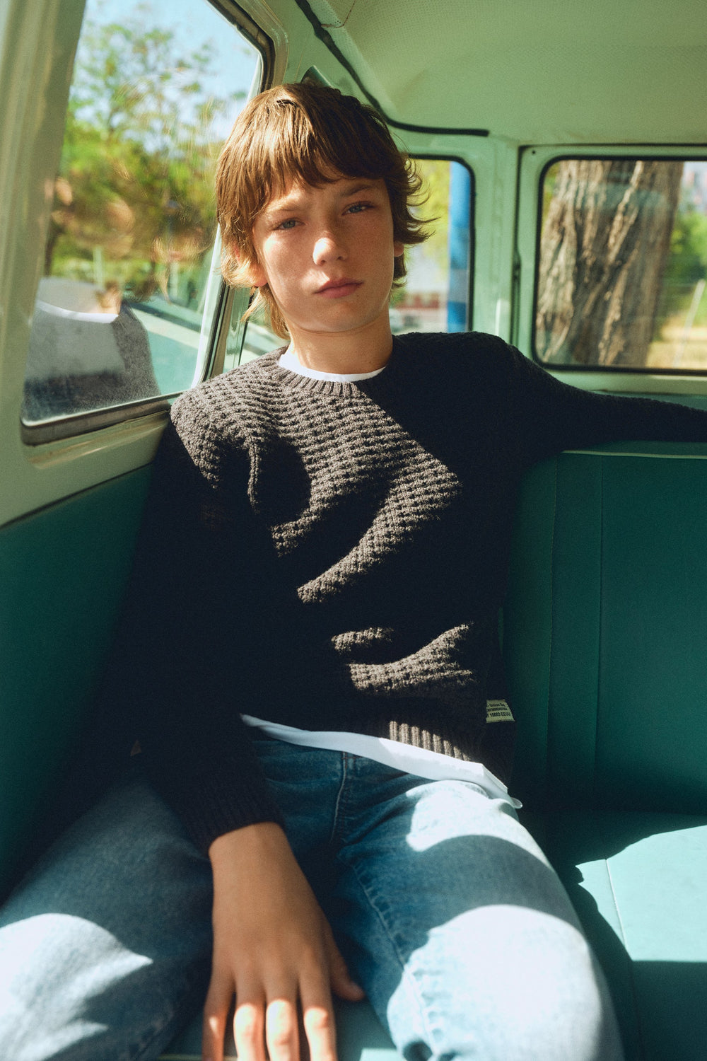 Sweater com estrutura. Confecionada em mistura de lã. Corte Regular Fit. Manga comprida. Decote redondo. Pormenor de remendo bordado na bainha.