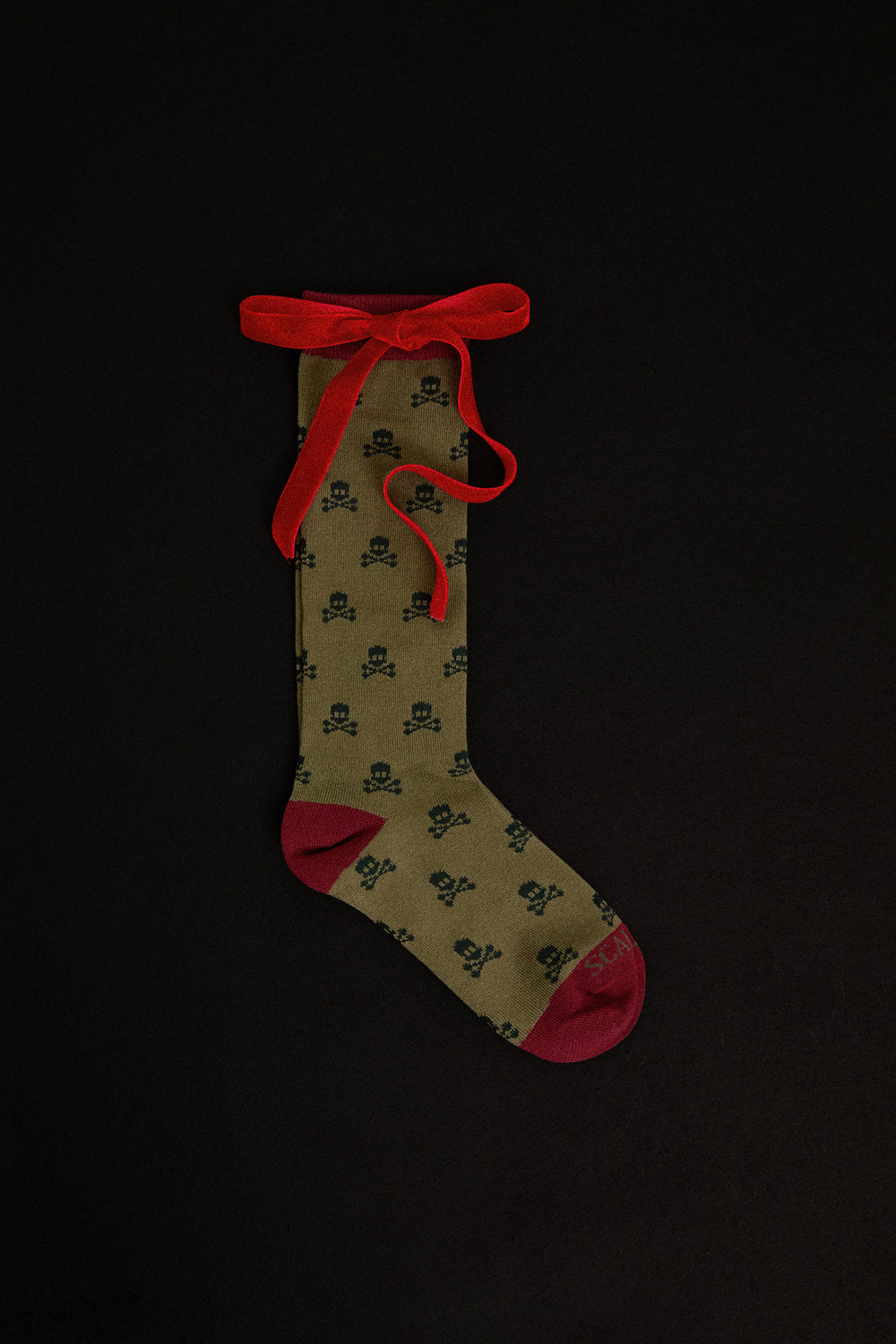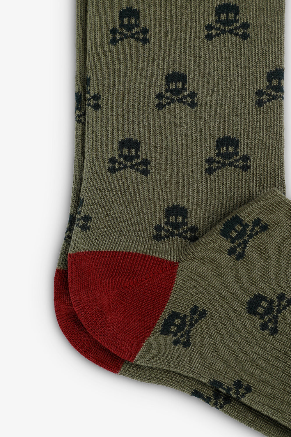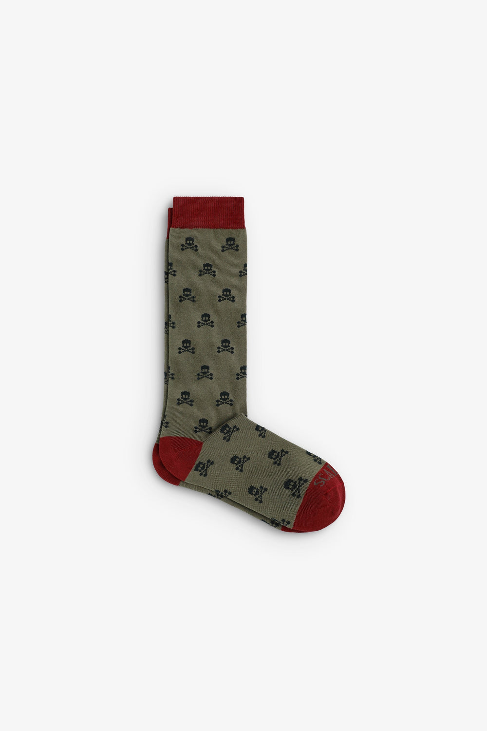 Meias compridas confecionadas em mistura de algodão. Padrão de skulls. Ponta e calcanhar a contrastar. Pormenor de logótipo em contraste.