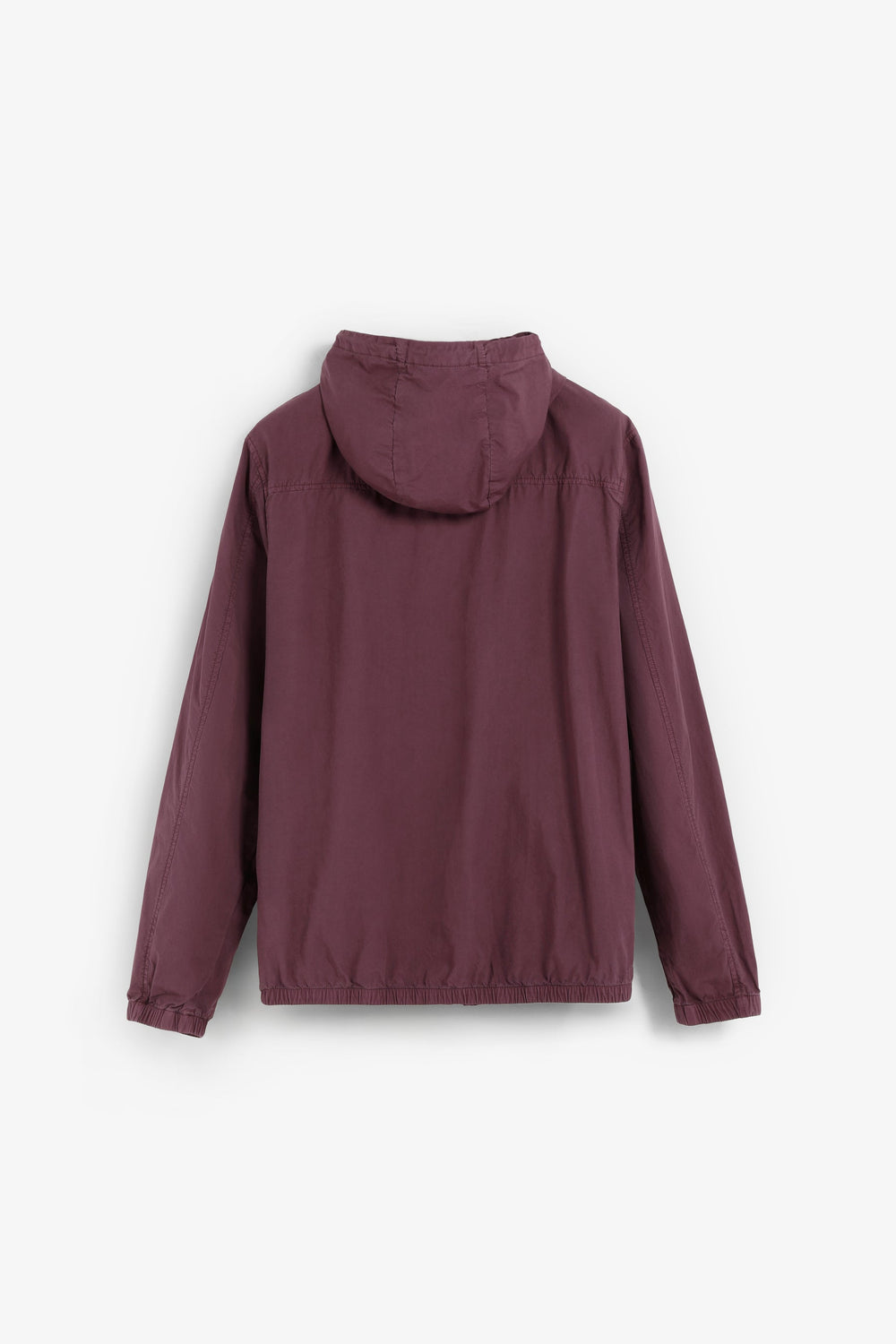 Casaco leve confecionado em 100% algodão BCI. Regular fit. Gola com capuz ajustável com cordão e fecho com fecho de correr. Manga comprida terminada em elástico. Bolsos à frente com aba. Forro.