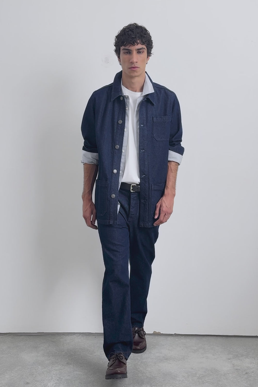 Casaco jeans confecionado em 100% algodão. Colarinho de camisa. Efeito desbotado suave. Bolsos à frente com pormenor de etiqueta. Punhos ajustáveis. Fecho de botões.