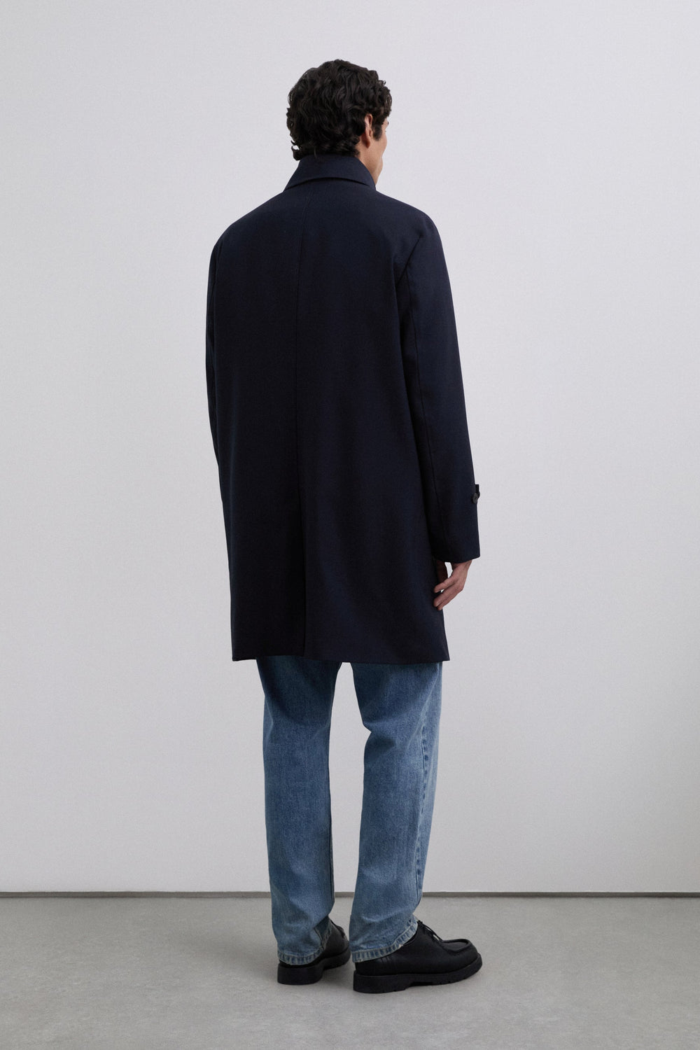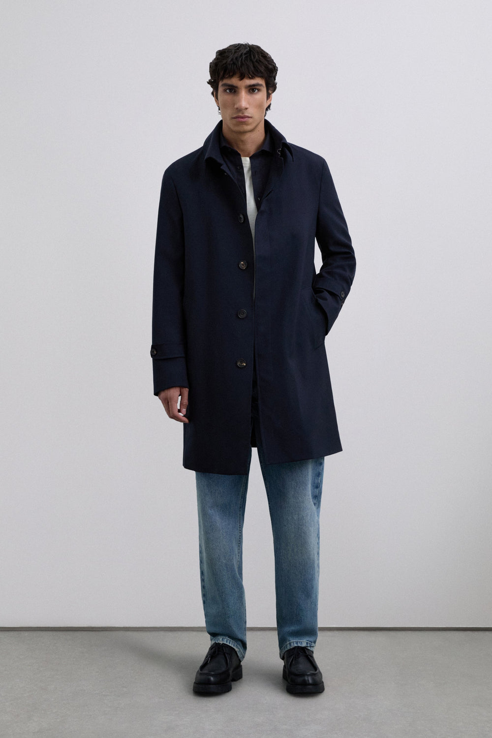 Gabardina confecionada em 100% pele. Fecho de botão oculto. Punhos ajustáveis com botão. Gola de camisa.