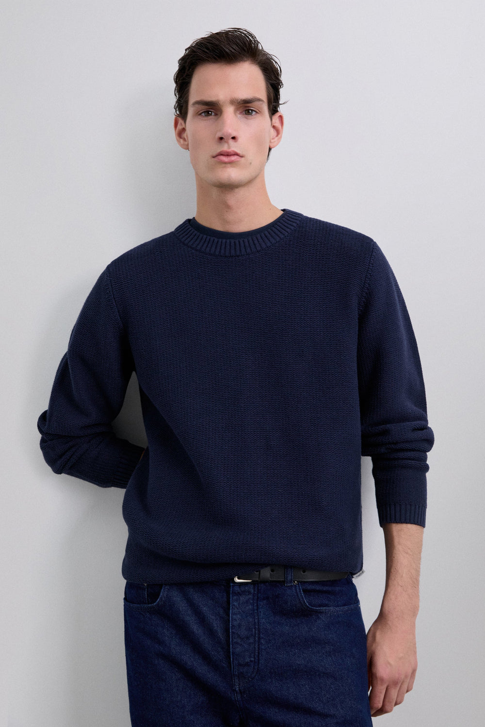 Sweater confecionada em 100% algodão BCI. Decote redondo. Manga comprida. Corte regular. Acabamentos em nervuras.