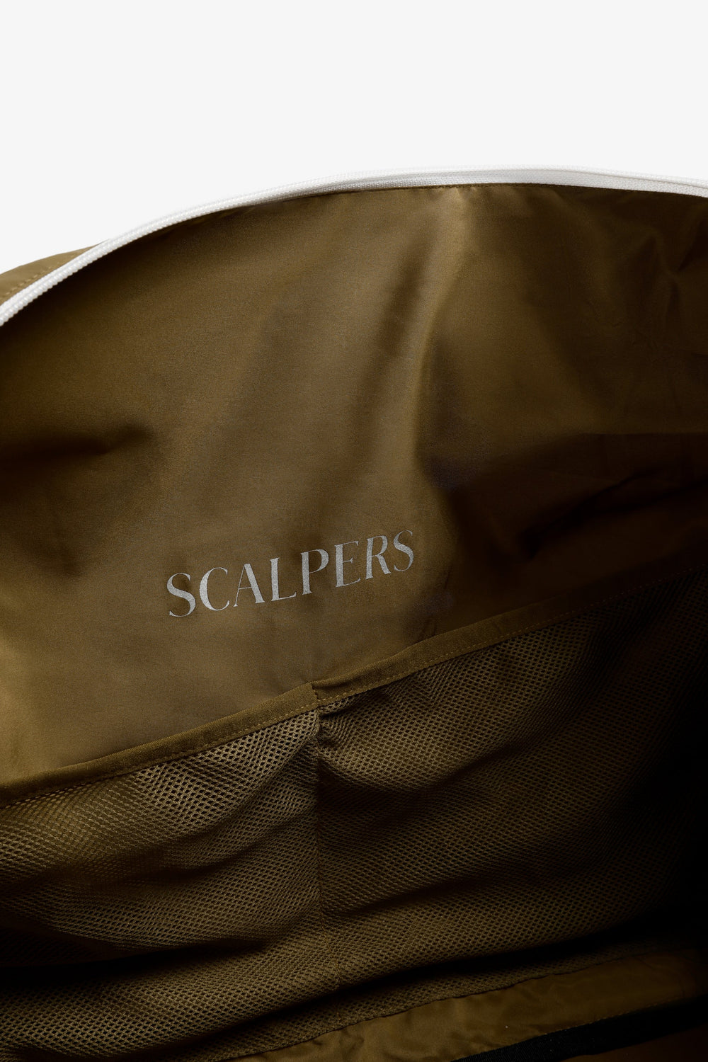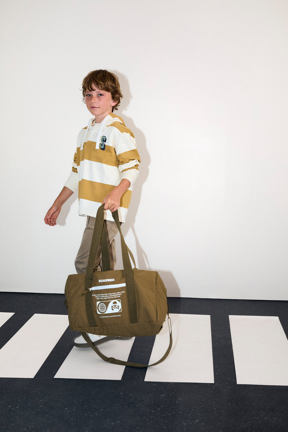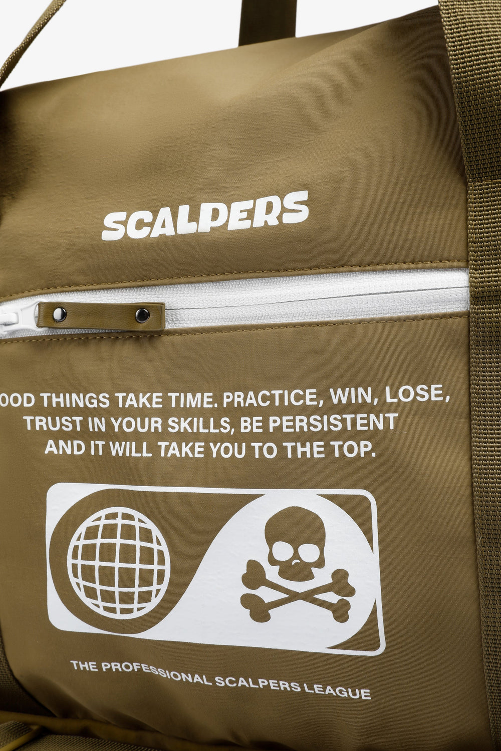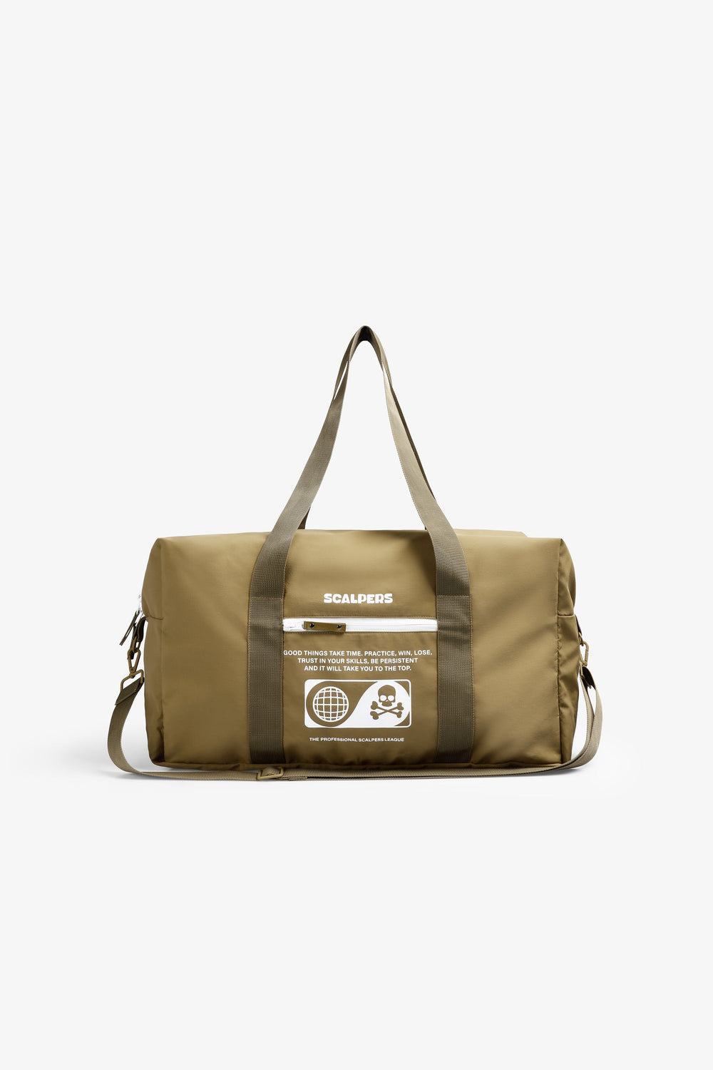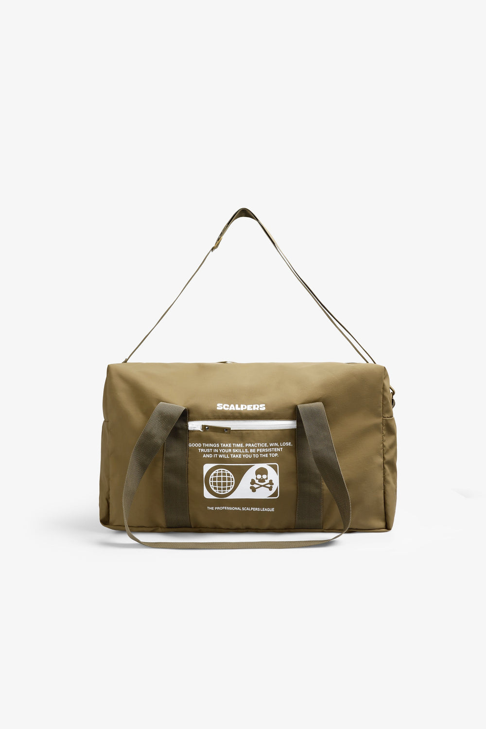 Bolsa confecionada em tecido técnico. Compartimento principal e lateral com fecho de correr. Fecho com zip, alças curtas e alça comprida removível. Padrão frontal com logótipo e skull.