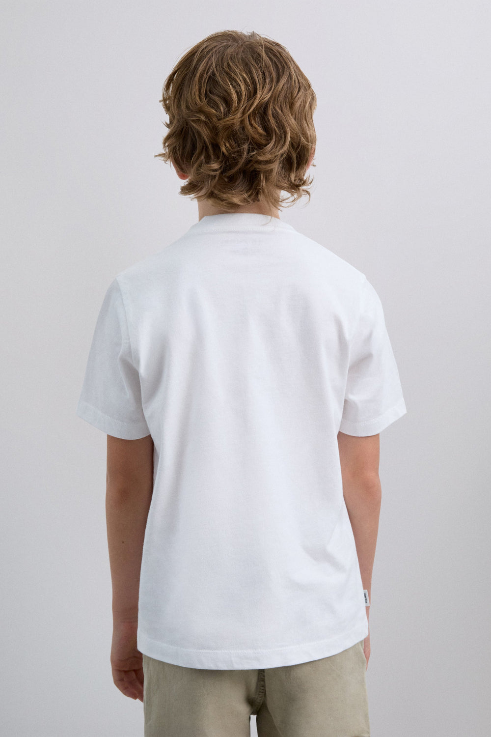 T-shirt confecionada em 100% algodão BCI. Regular fit. Padrão com logótipo no peito. Manga curta. Decote redondo.