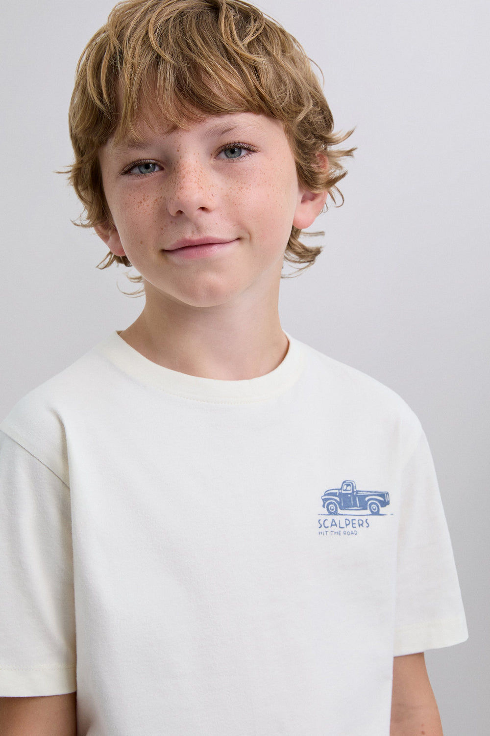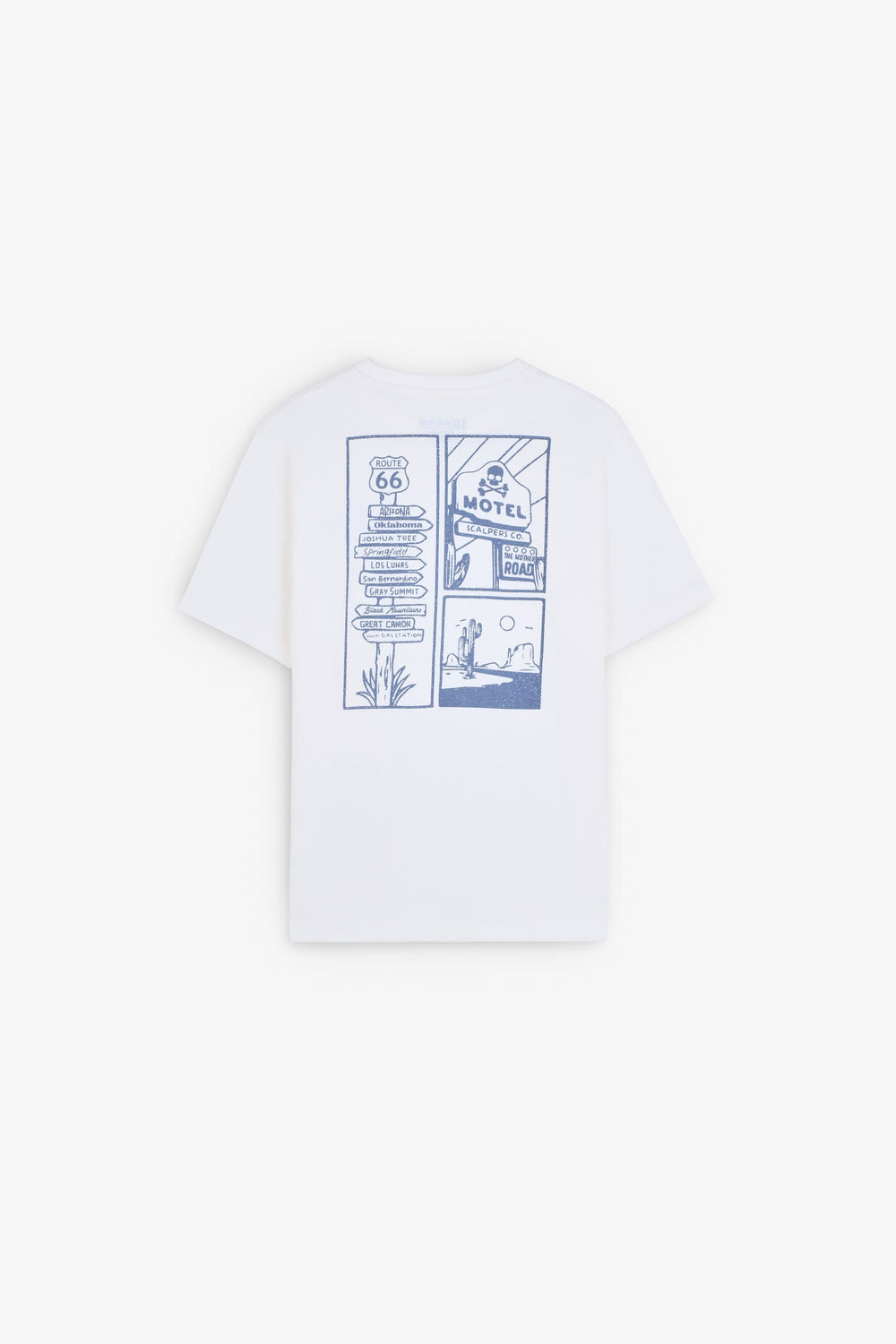 T-shirt confecionada em 100% algodão BCI. Regular fit. Padrão com logótipo no peito e atrás. Manga curta. Decote redondo.