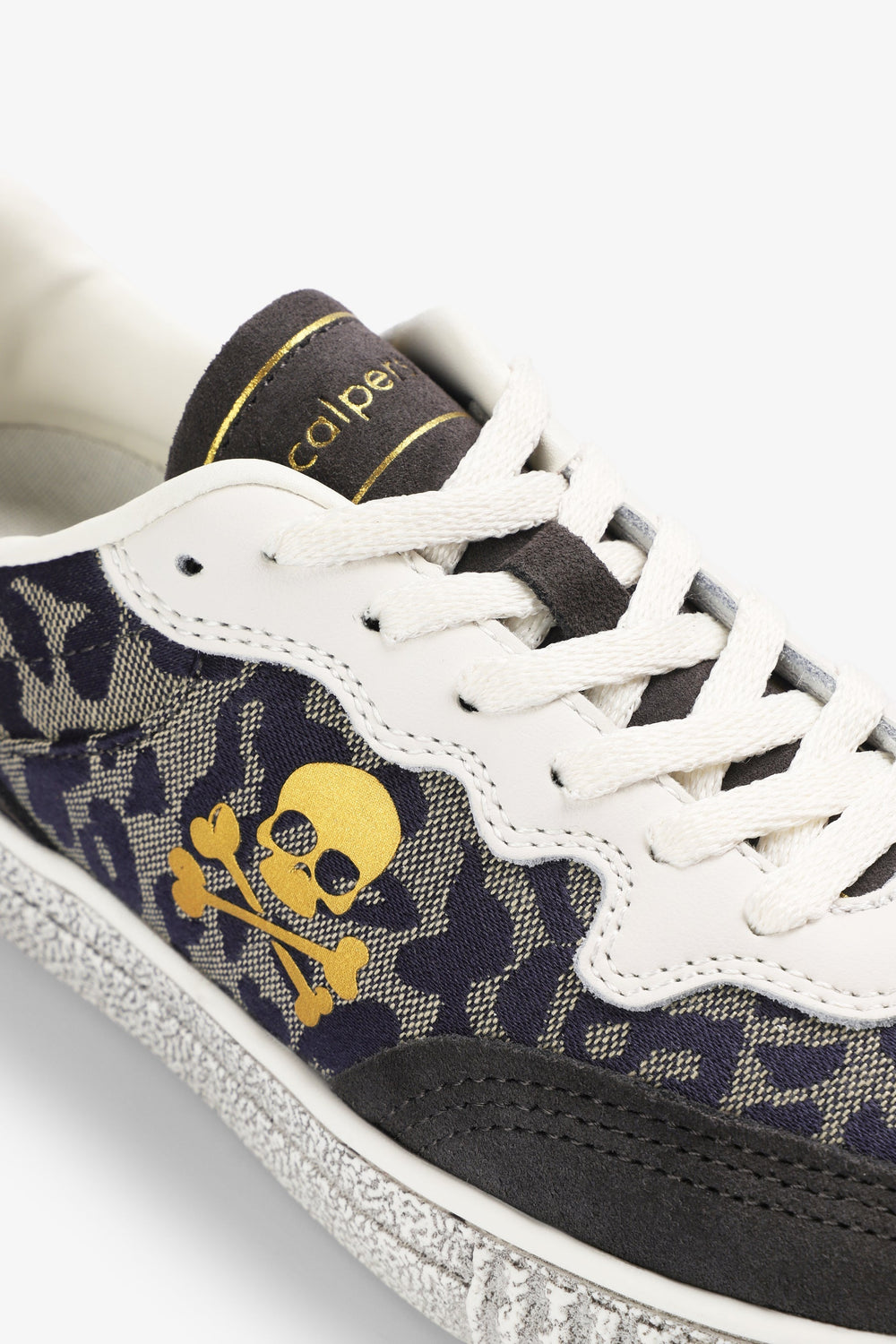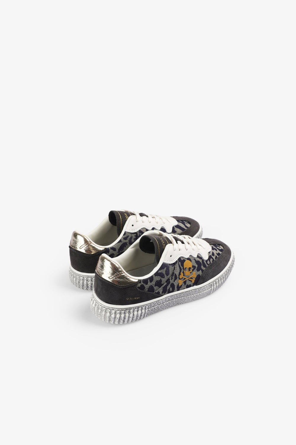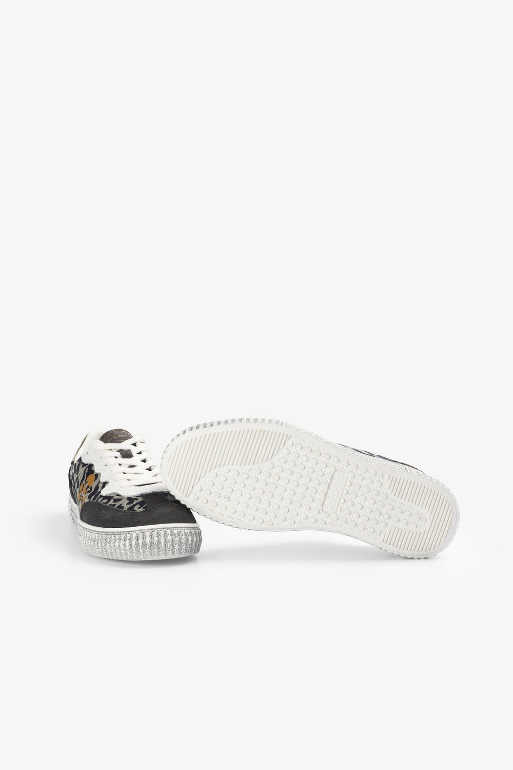 Sapatilhas baixas com skull lateral a contrastar Estampado animal. Fecho com cordões. Sola de TPR. Pormenor metalizado em contraste no calcanhar e pormenor do logótipo na língua e na parte inferior.