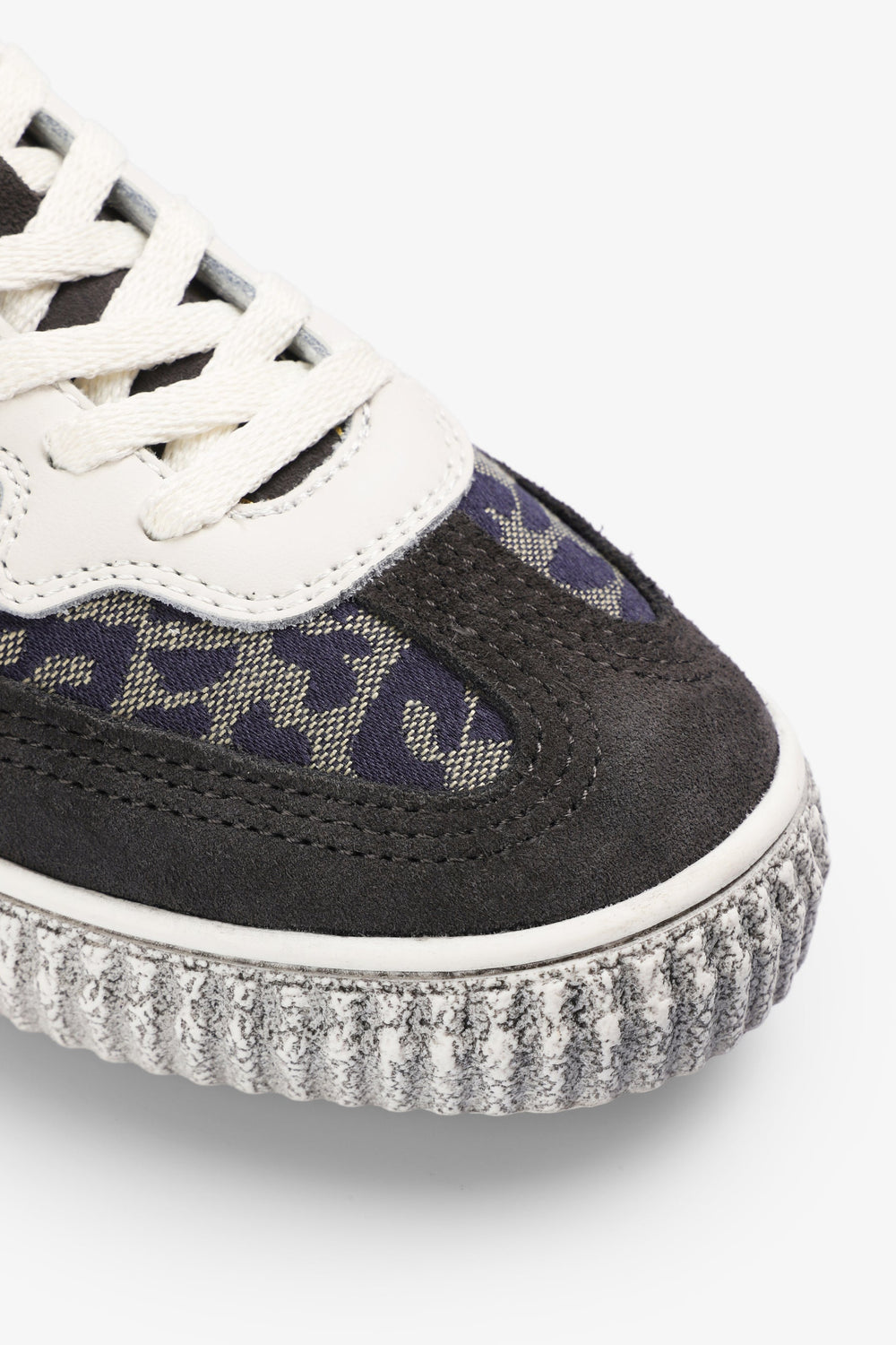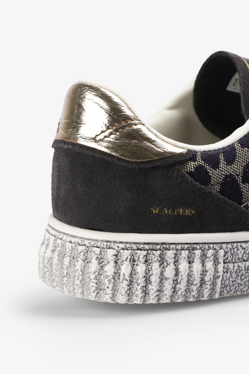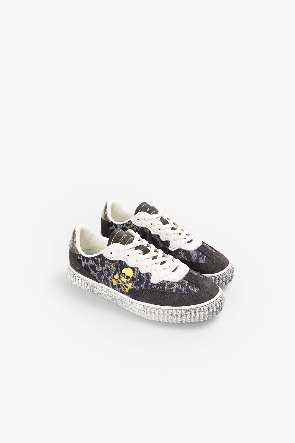 Sapatilhas baixas com skull lateral a contrastar Estampado animal. Fecho com cordões. Sola de TPR. Pormenor metalizado em contraste no calcanhar e pormenor do logótipo na língua e na parte inferior.
